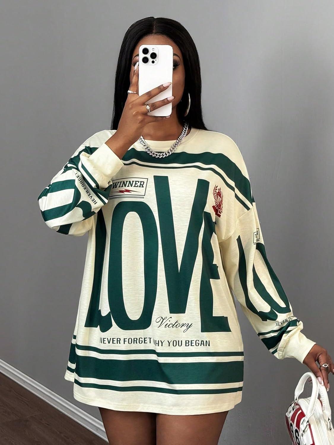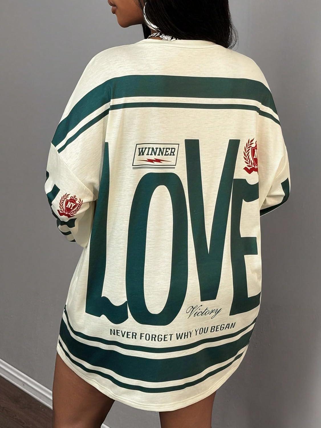 SOLY HUX Women’s Retro Oversized T-Shirt Streetwear Long Sleeve Graphic Tees Printed Crewneck Tops(Beige Multi)