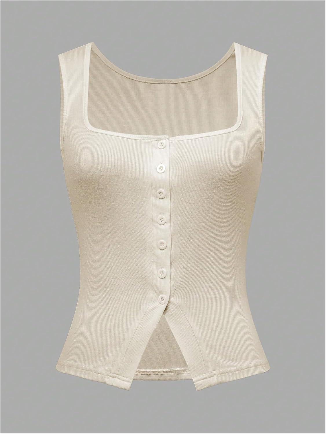 SOLY HUX Women’s Ribbed Button Down Tank Tops Square Neck Sleeveless Summer Tight Vest Shirts(Solid Apricot)