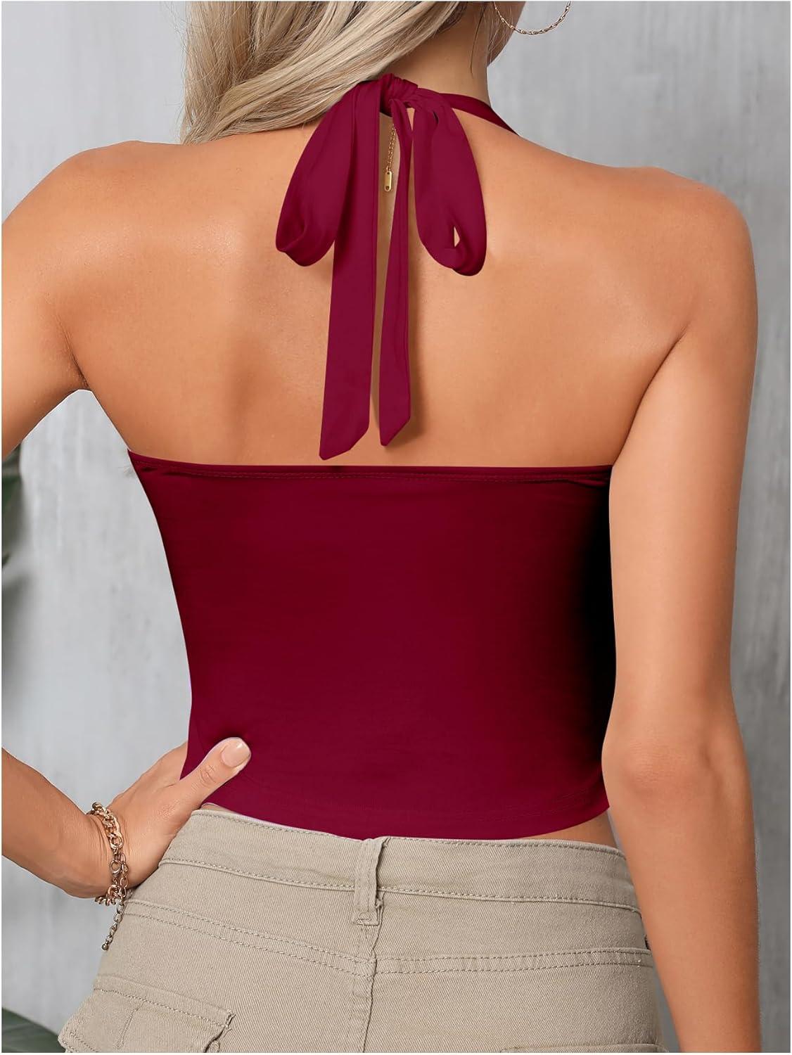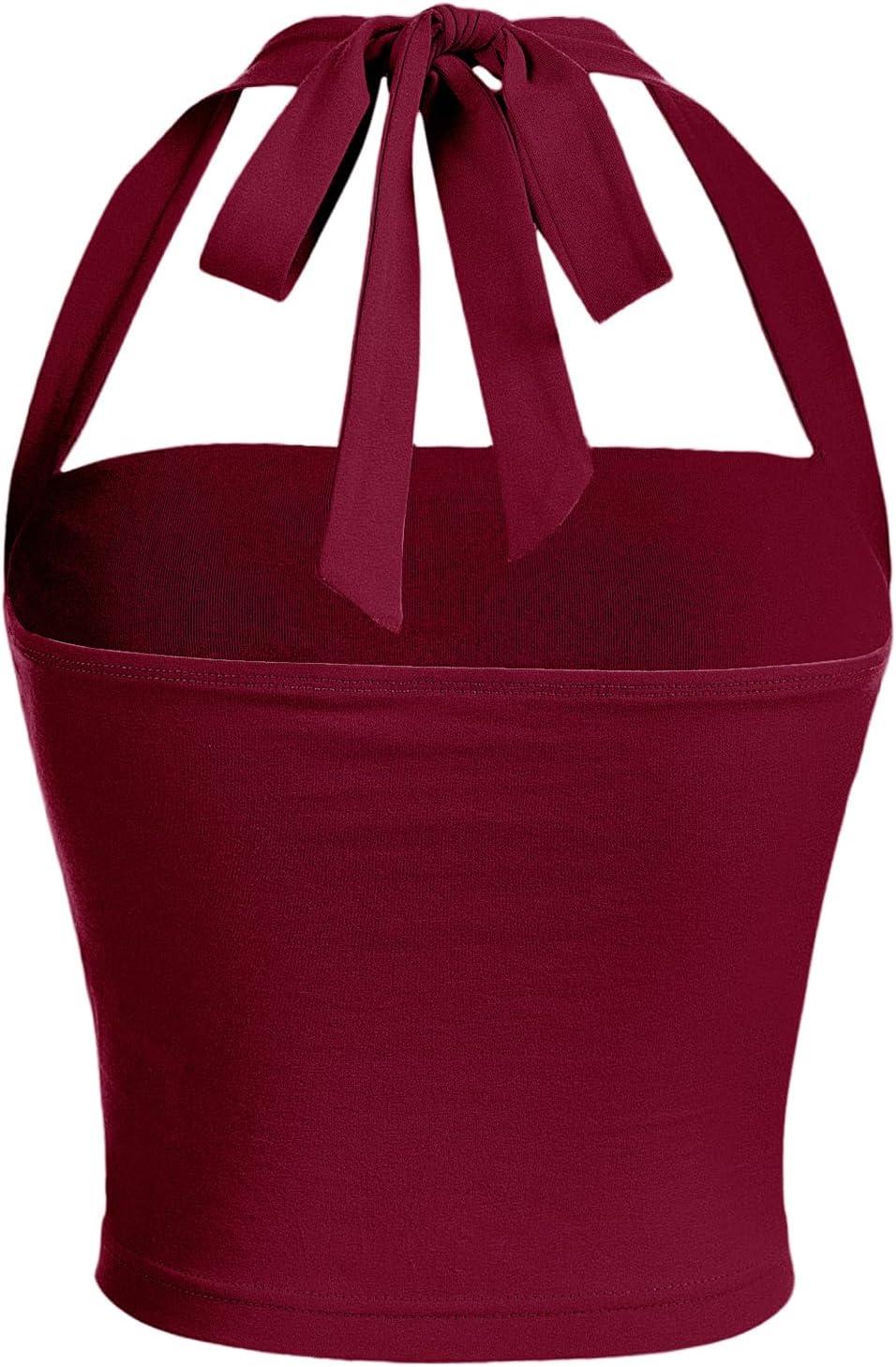 SOLY HUX Women’s Ruched Halter Y2K Crop Tops Tie Back Sleeveless Slim Fit Cami Tops(Solid Burgundy)