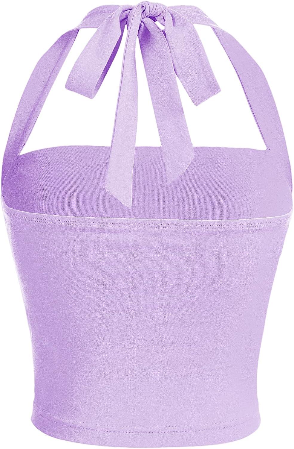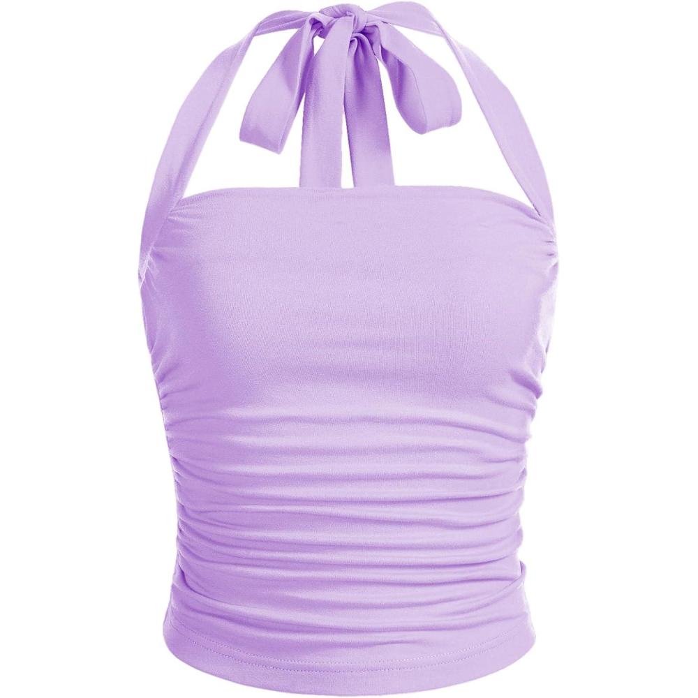 SOLY HUX Women’s Ruched Halter Y2K Crop Tops Tie Back Sleeveless Slim Fit Cami Tops(Violet Purple)