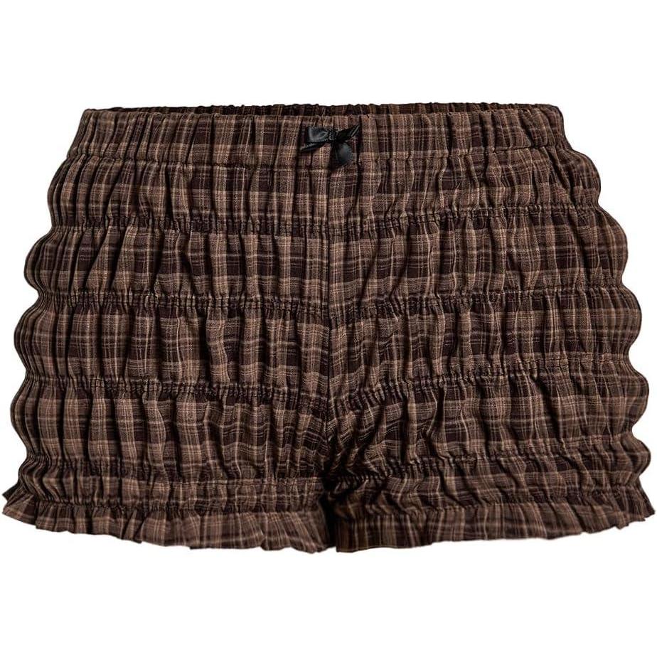 SOLY HUX Women’s Ruffle Shorts Plaid Y2k Lace Bloomers Elastic Waist Frill Bottoms Gingham Micro Boyshorts(Brown Plaid)