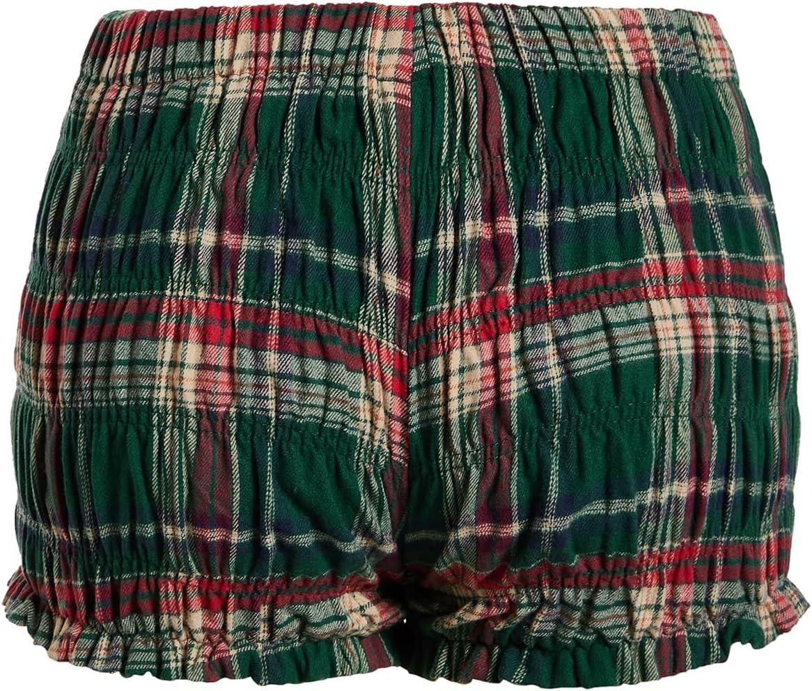 SOLY HUX Women’s Ruffle Shorts Plaid Y2k Lace Bloomers Elastic Waist Frill Bottoms Gingham Micro Boyshorts(Green Multi Plaid)