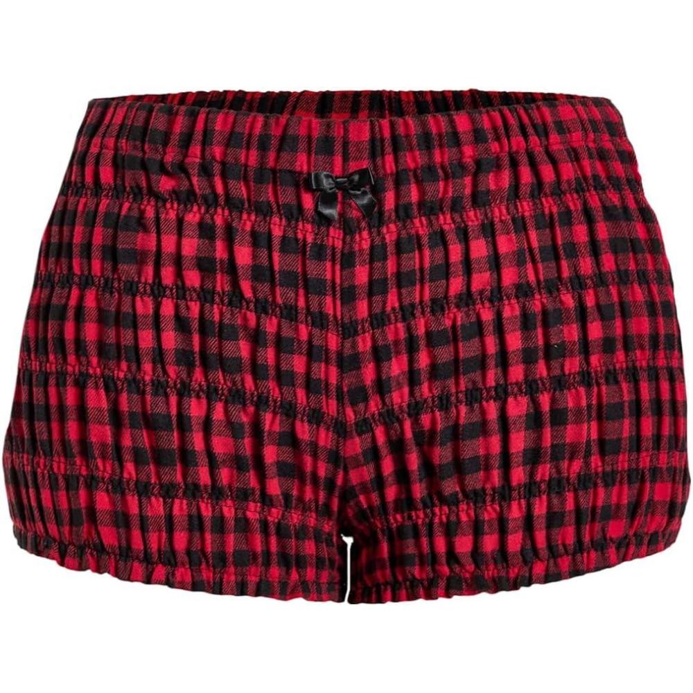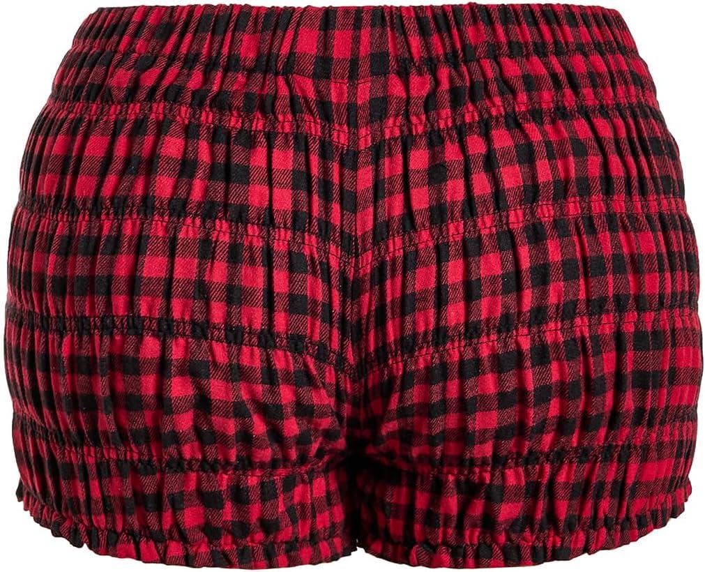 SOLY HUX Women’s Ruffle Shorts Plaid Y2k Lace Bloomers Elastic Waist Frill Bottoms Gingham Micro Boyshorts(Red Plaid)