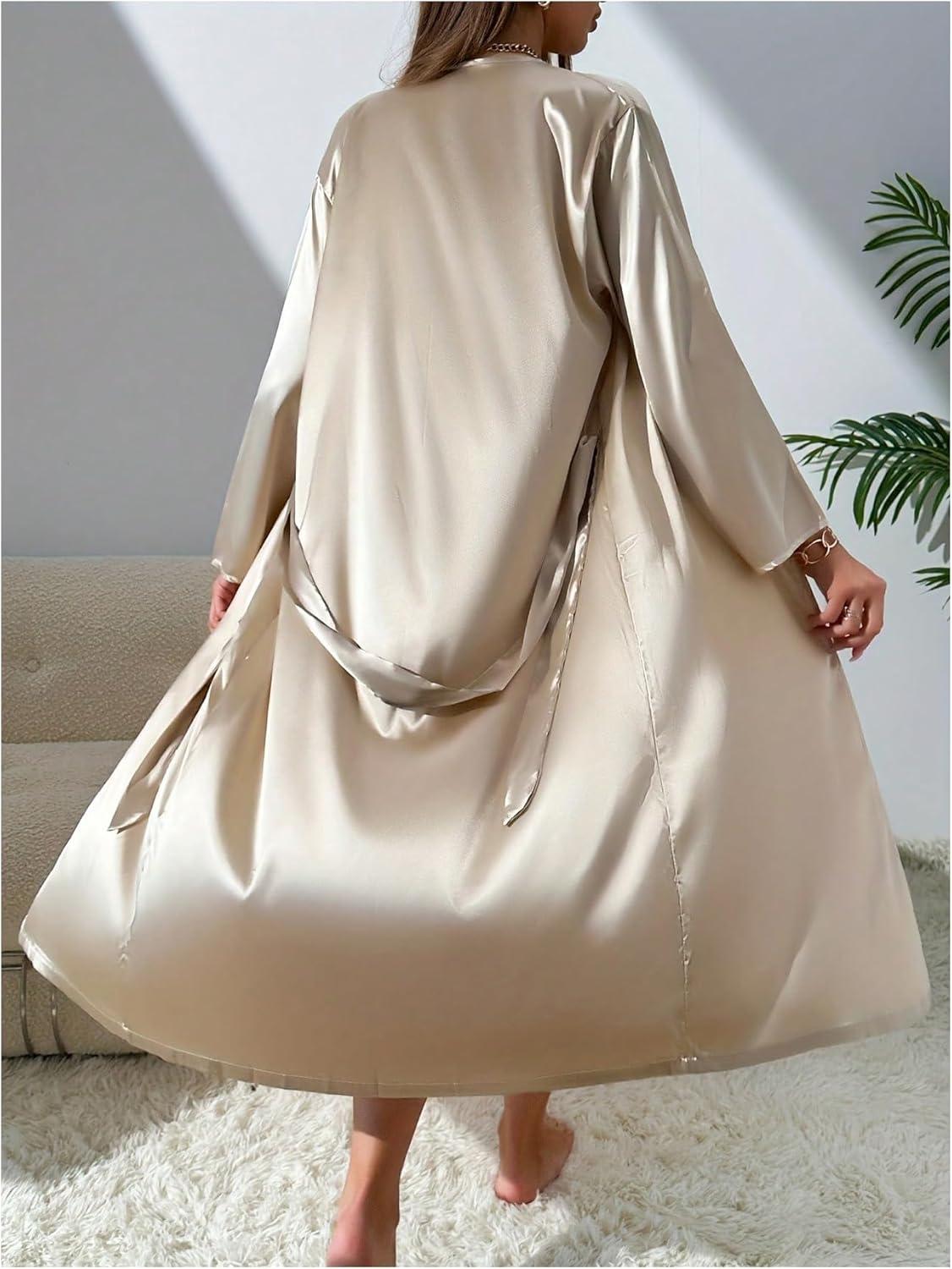 SOLY HUX Women’s Satin Pajama Set Cowl Neck Silk Nightgown Slip Cami Dress with Belted Robe(Pure Champagne)