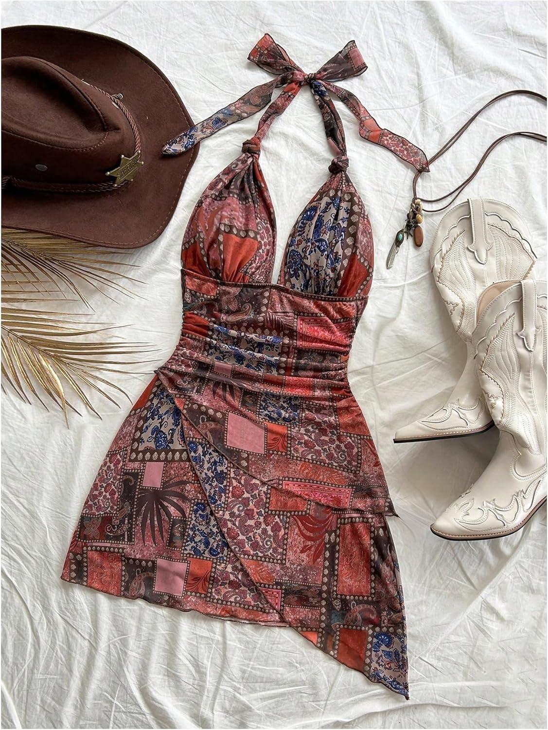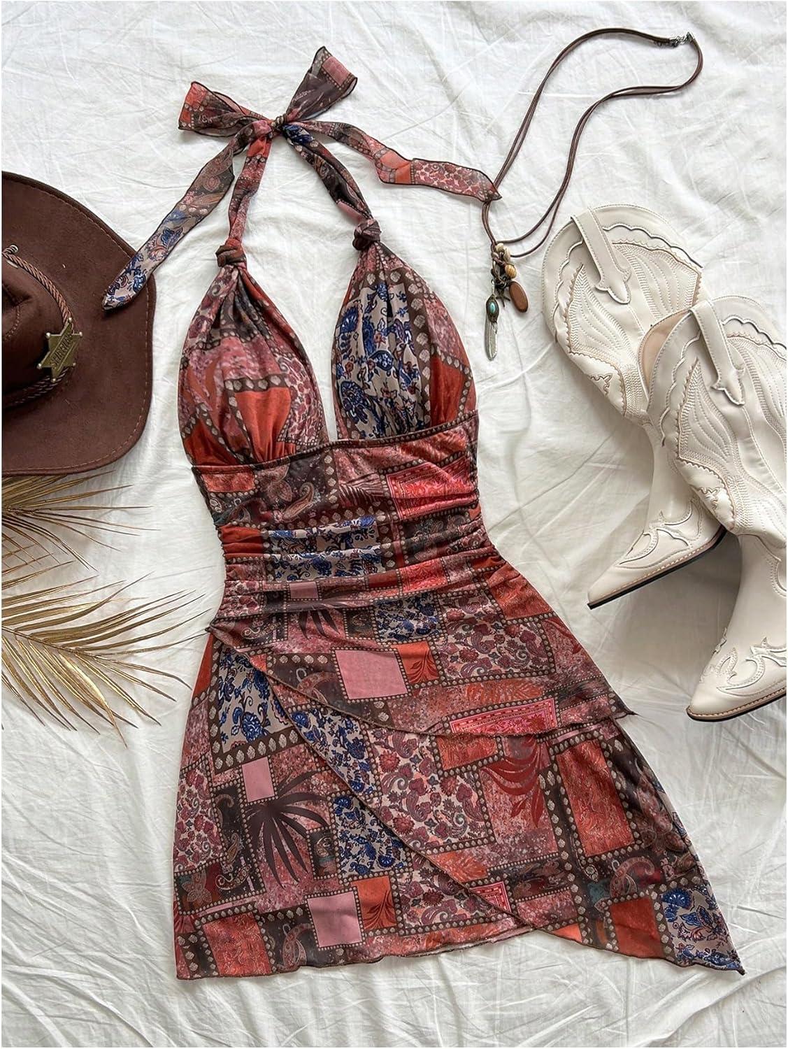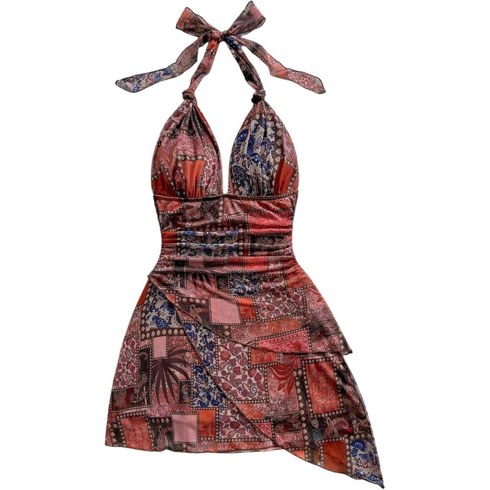 Be the first to review “SOLY HUX Women’s Sexy Tie Dye Print Halter V Neck Mini Dress Retro Backless Fitted Bodycon Dresses(Red Multi)”