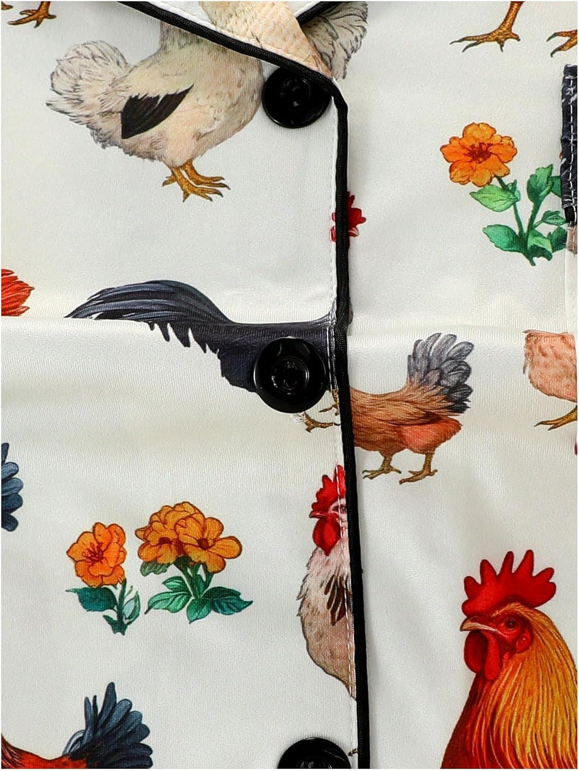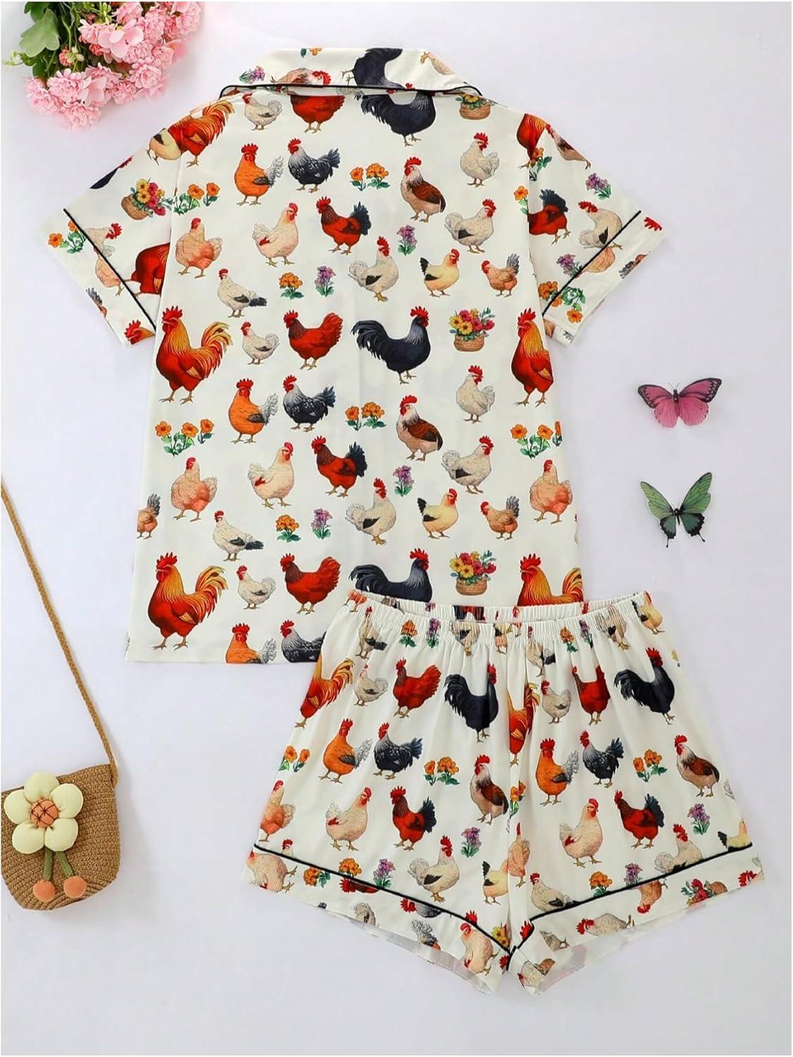 SOLY HUX Women’s Short Pajamas Set Cute Printed Button Short Sleeve Shirt with Shorts Sleepwear PJs Set(Beige Rooster)