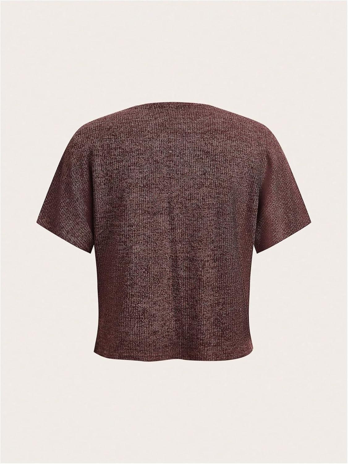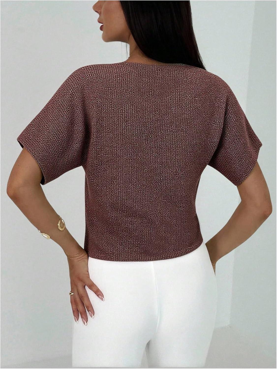 SOLY HUX Women’s Short Sleeve Office Spring Winter Cardigan Sweater Button Down V Neck Slim Fit Elegant Knit Tops(Rust Brown)