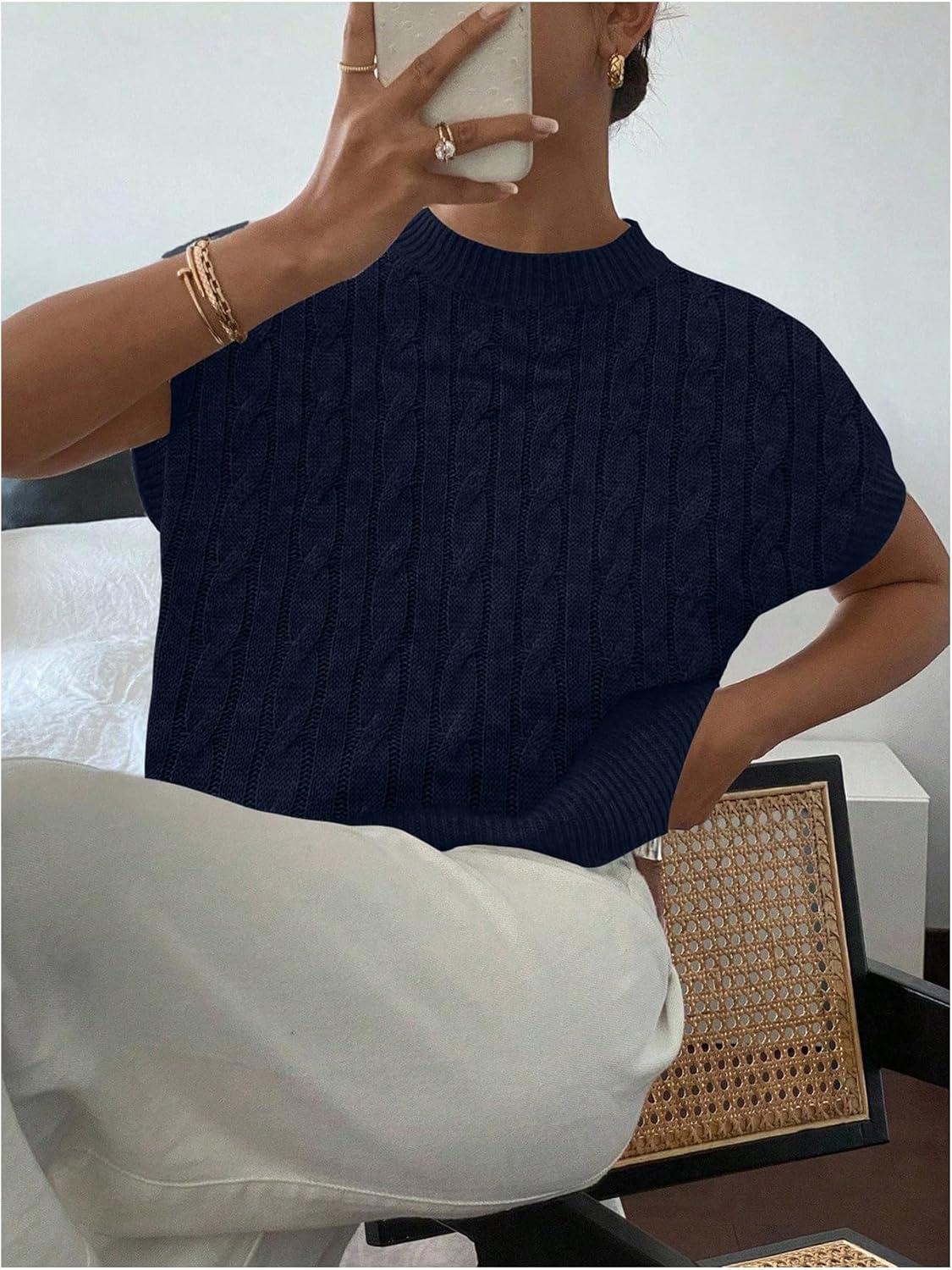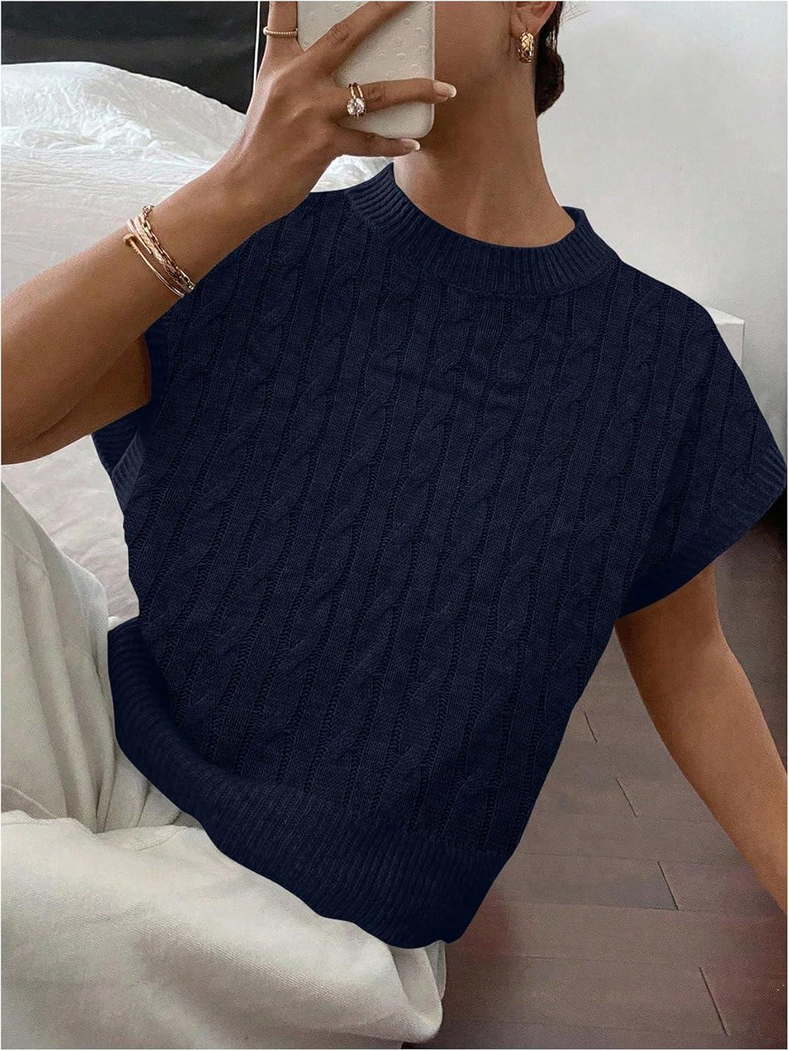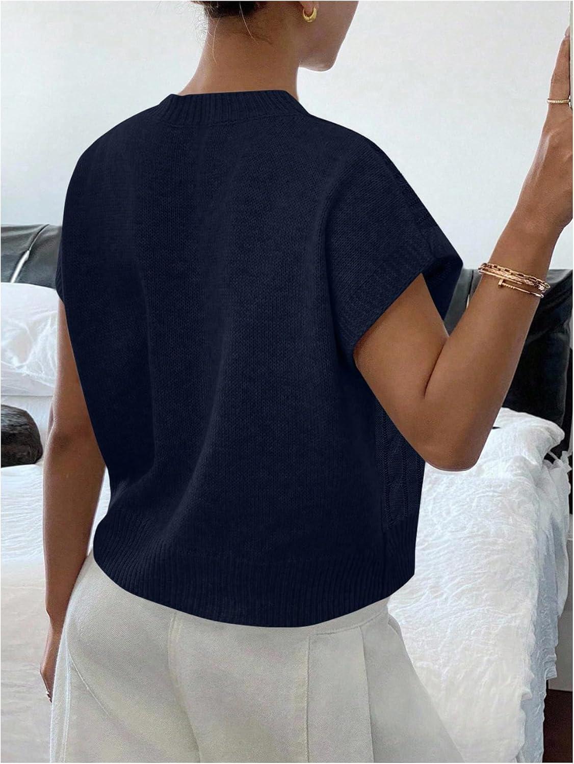 SOLY HUX Women’s Short Sleeve Sweater 3D Floral Sweaters Pullover Tank Tops Knit Vest Trendy Fashion Clothing(Pure Dark Blue)