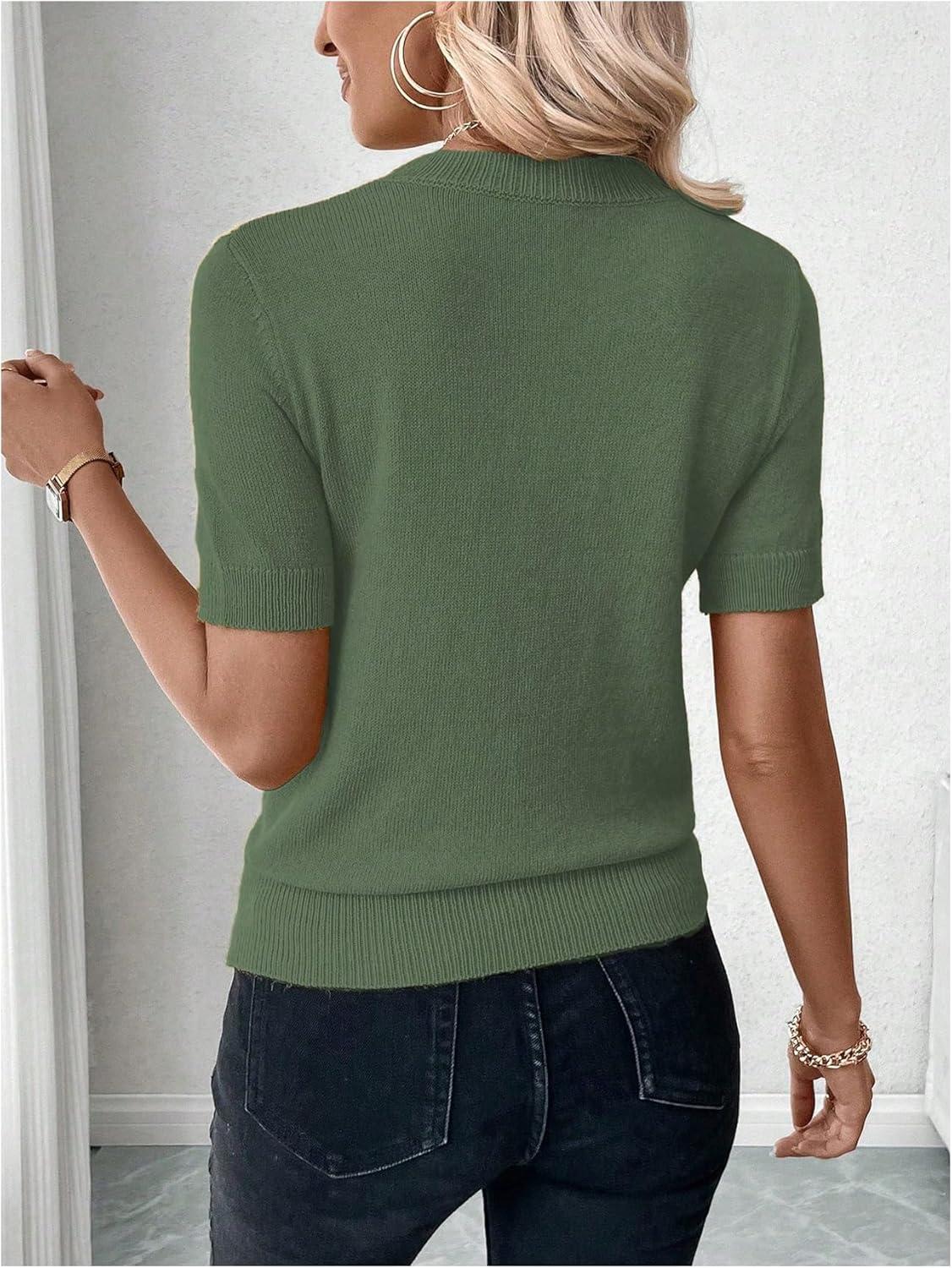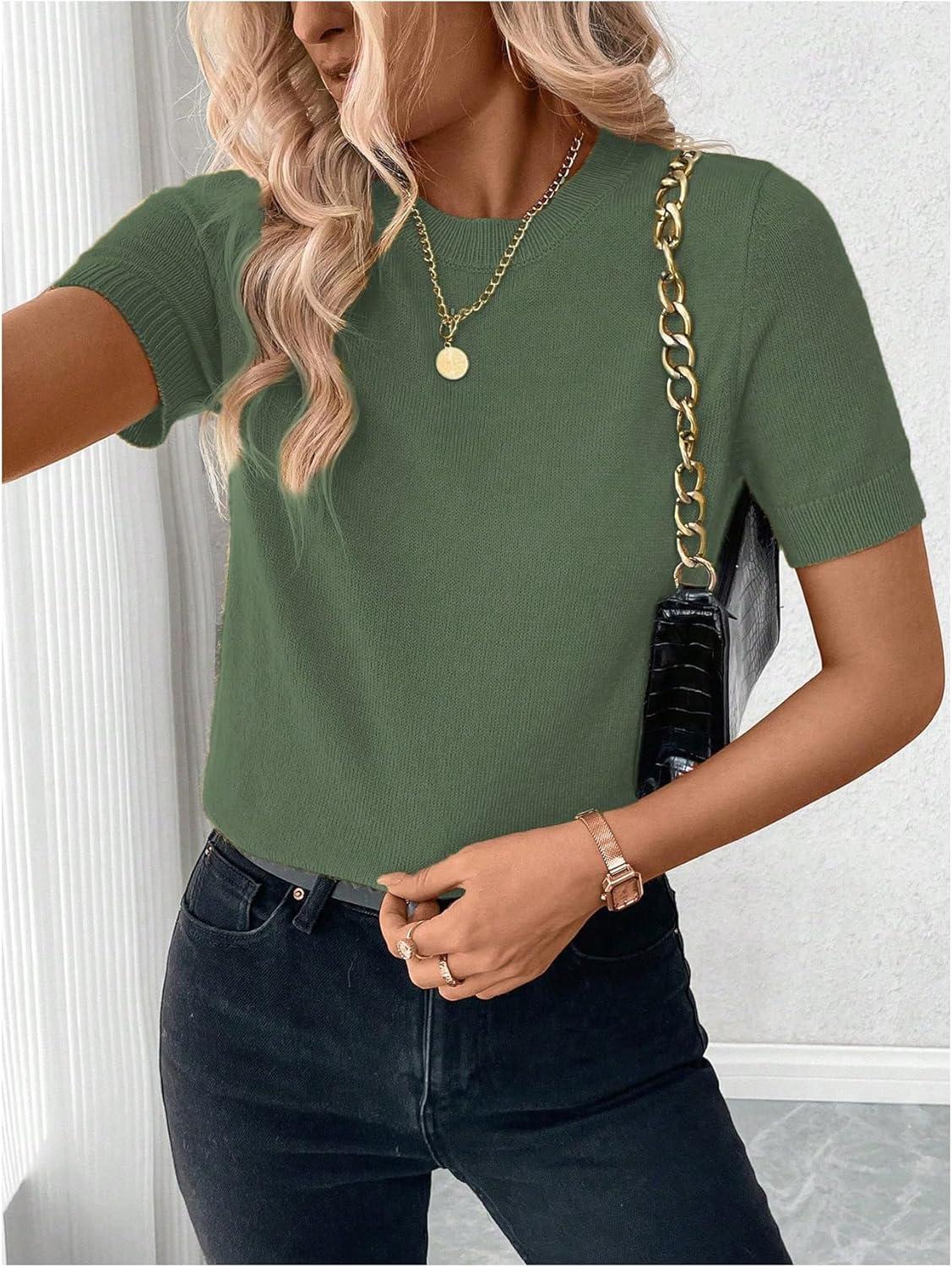 SOLY HUX Women’s Short Sleeve Sweater Crew Neck Dressy Casual Knit Tops(Pure Green)