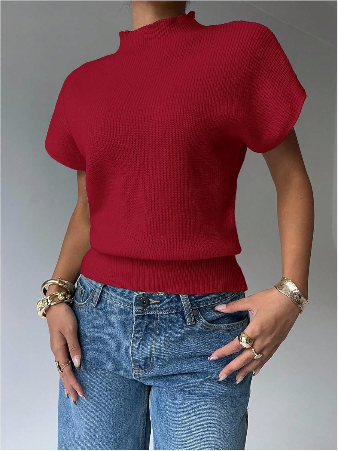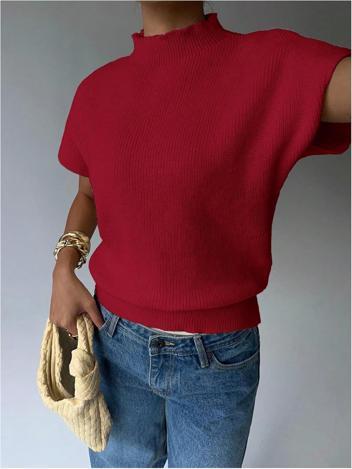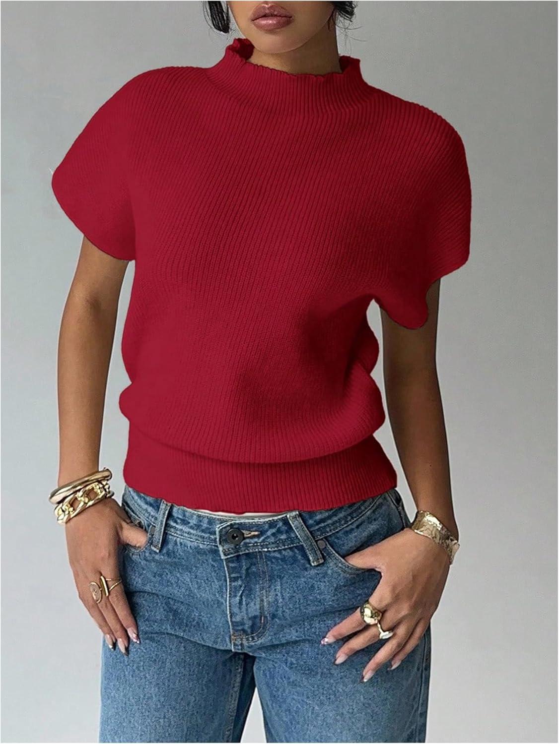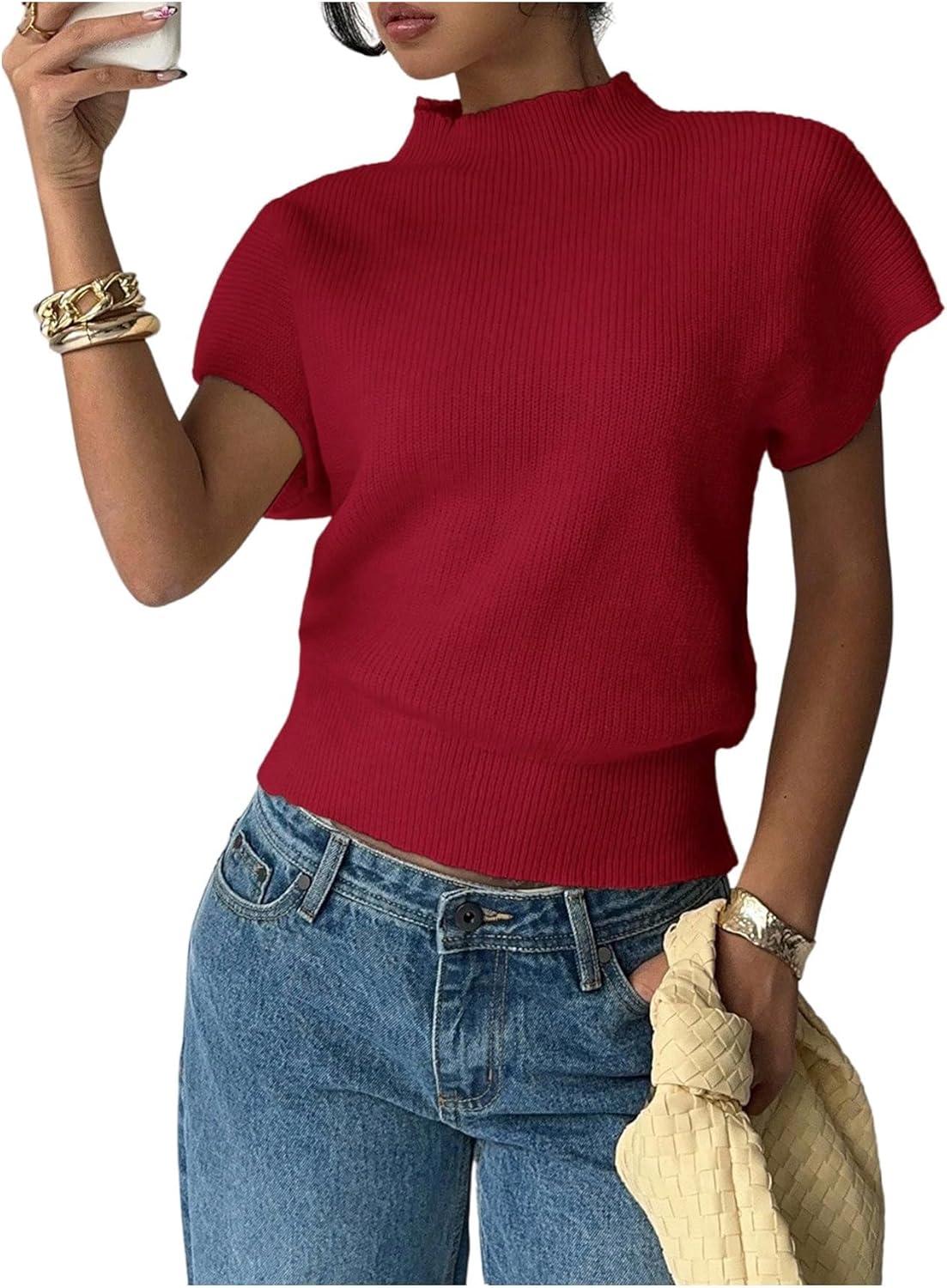 Be the first to review “SOLY HUX Women’s Short Sleeve Sweater Pullover Mock Neck Ribbed Knit Tops Work Office Outfit(Plain Burgundy)”