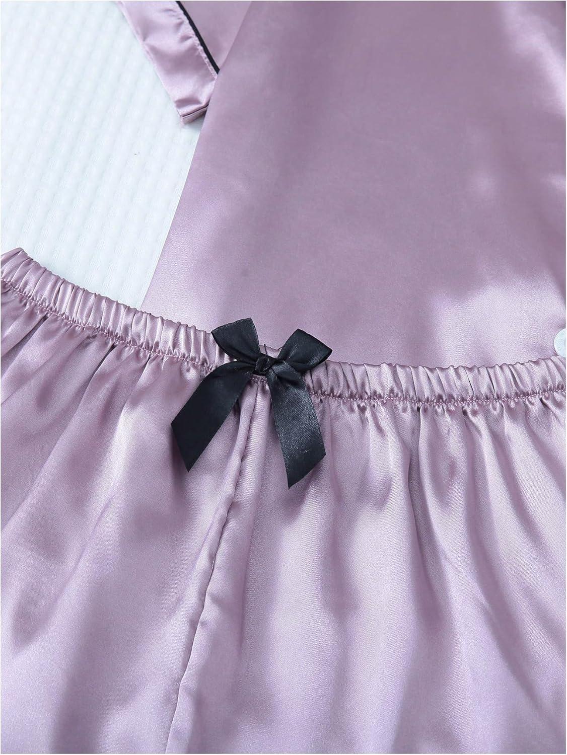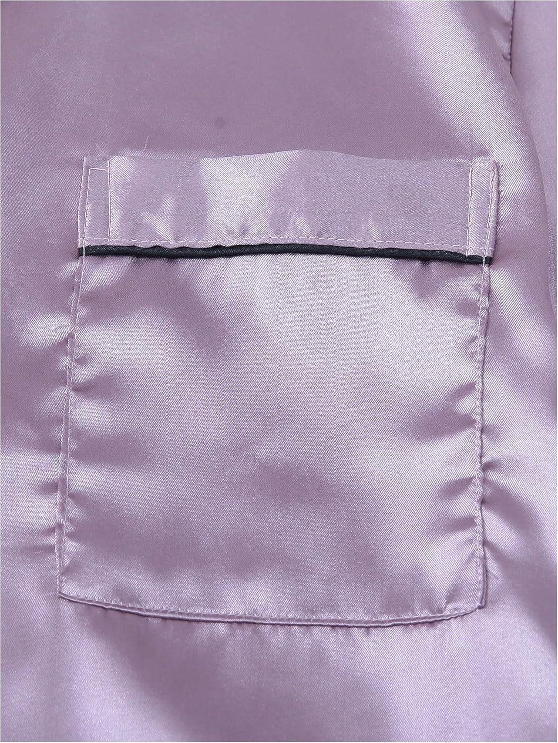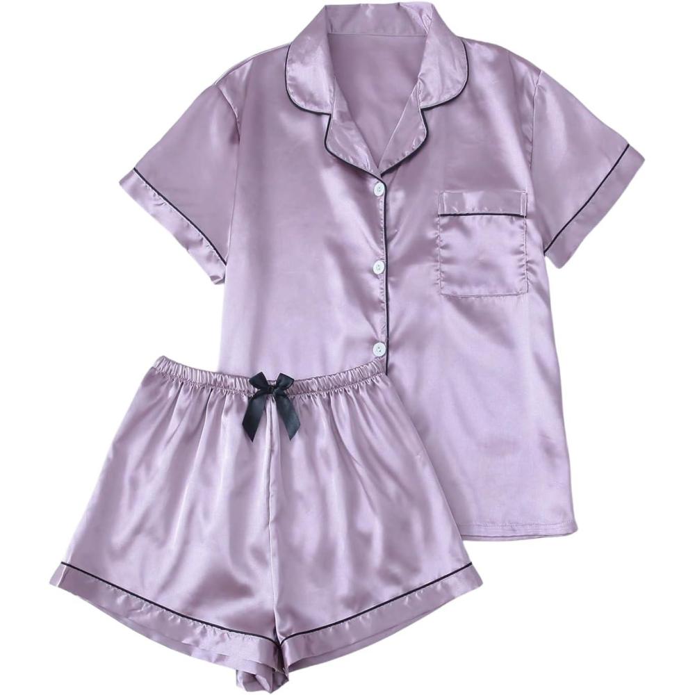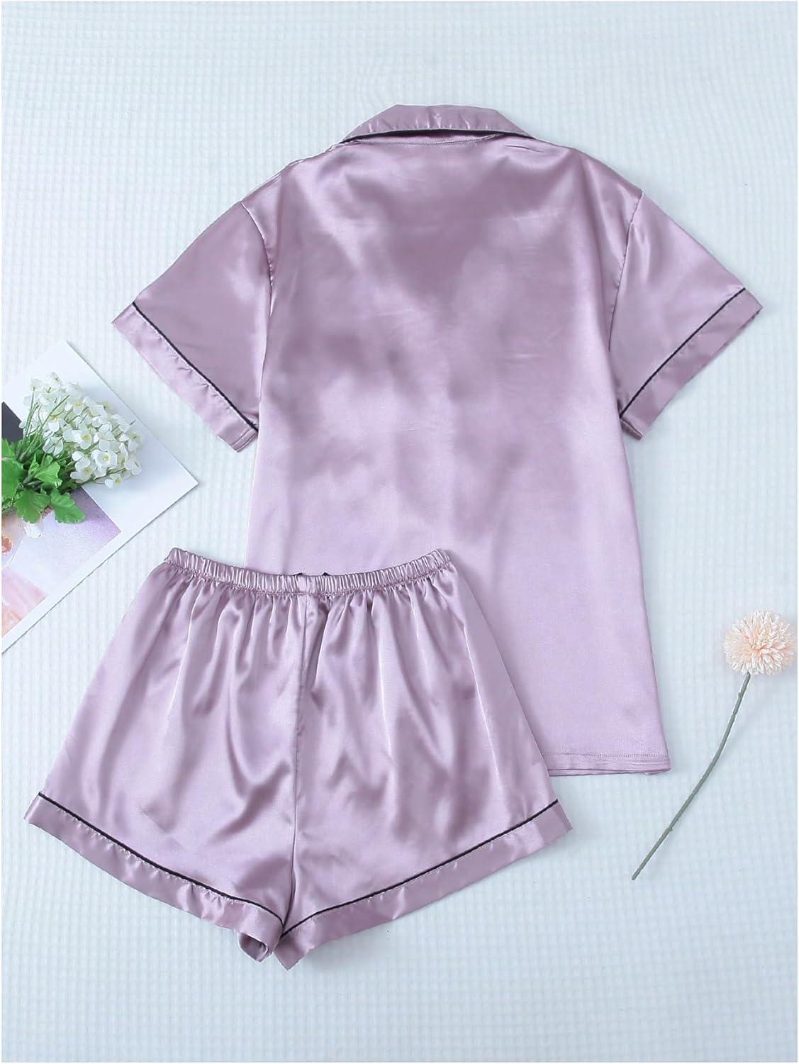 SOLY HUX Women’s Silk Satin Pajamas Short Sleeve Button Down Sleepwear Loungewear Shorts Set 2 Piece(Lilac Purple)