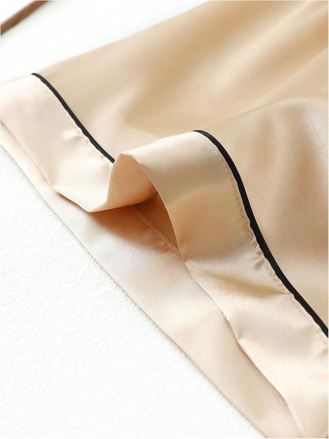 SOLY HUX Women’s Silk Satin Pajamas Short Sleeve Button Down Sleepwear Loungewear Shorts Set 2 Piece(Plain Yellow)