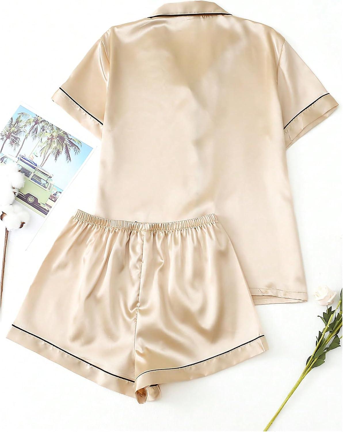 SOLY HUX Women’s Silk Satin Pajamas Short Sleeve Button Down Sleepwear Loungewear Shorts Set 2 Piece(Plain Pink)