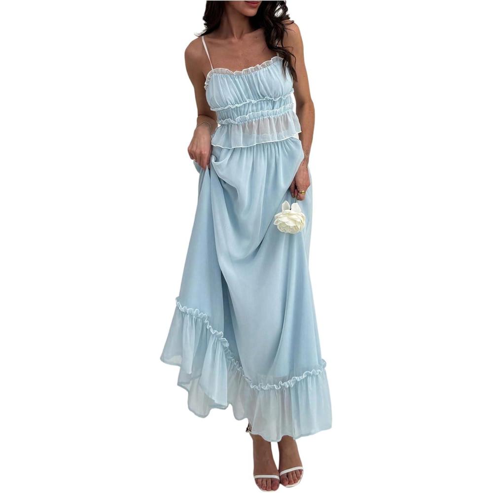 SOLY HUX Women’s Summer Camisole and Long Skirts 2 Piece Skirt Set Beach Vacation Outfits(Pure Blue)