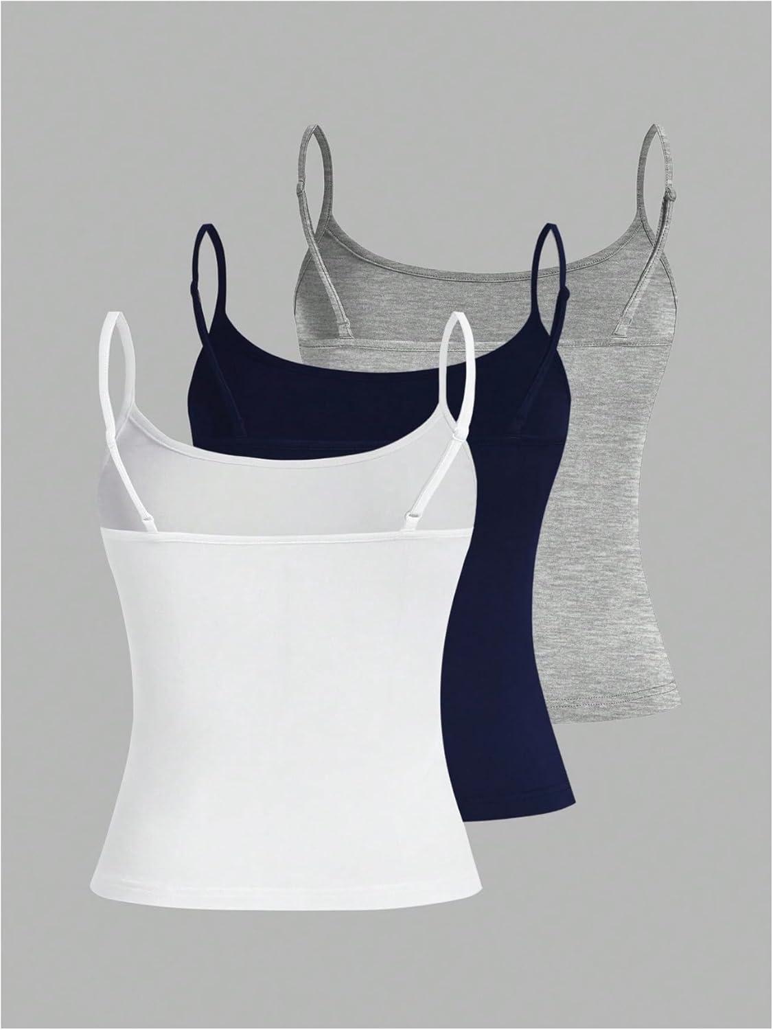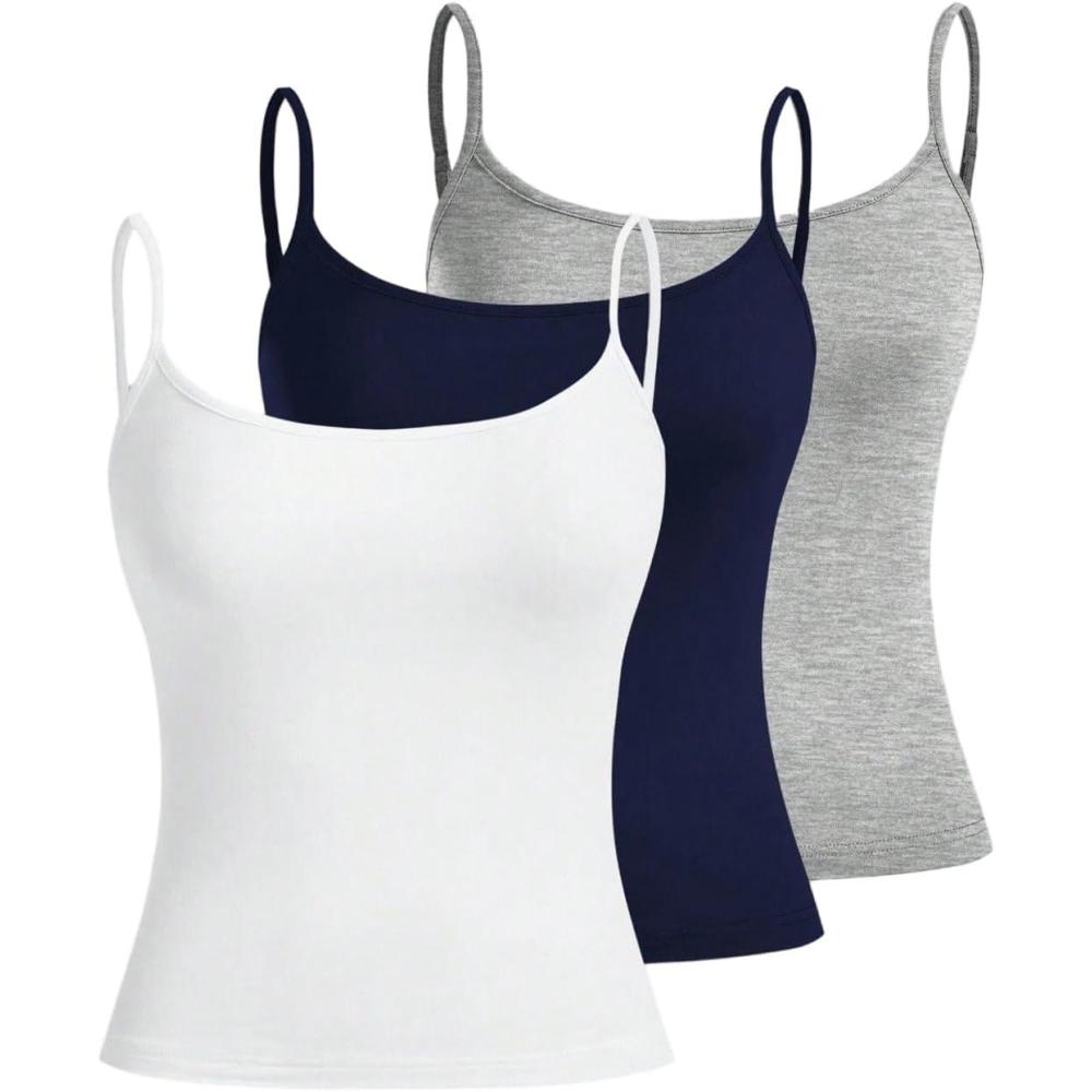 SOLY HUX Women’s Sleeveless Crop Camisole 3 Packs Spaghetti Strap Tank Tops Slim Fit Cami Shirts(White Dark Blue Grey)