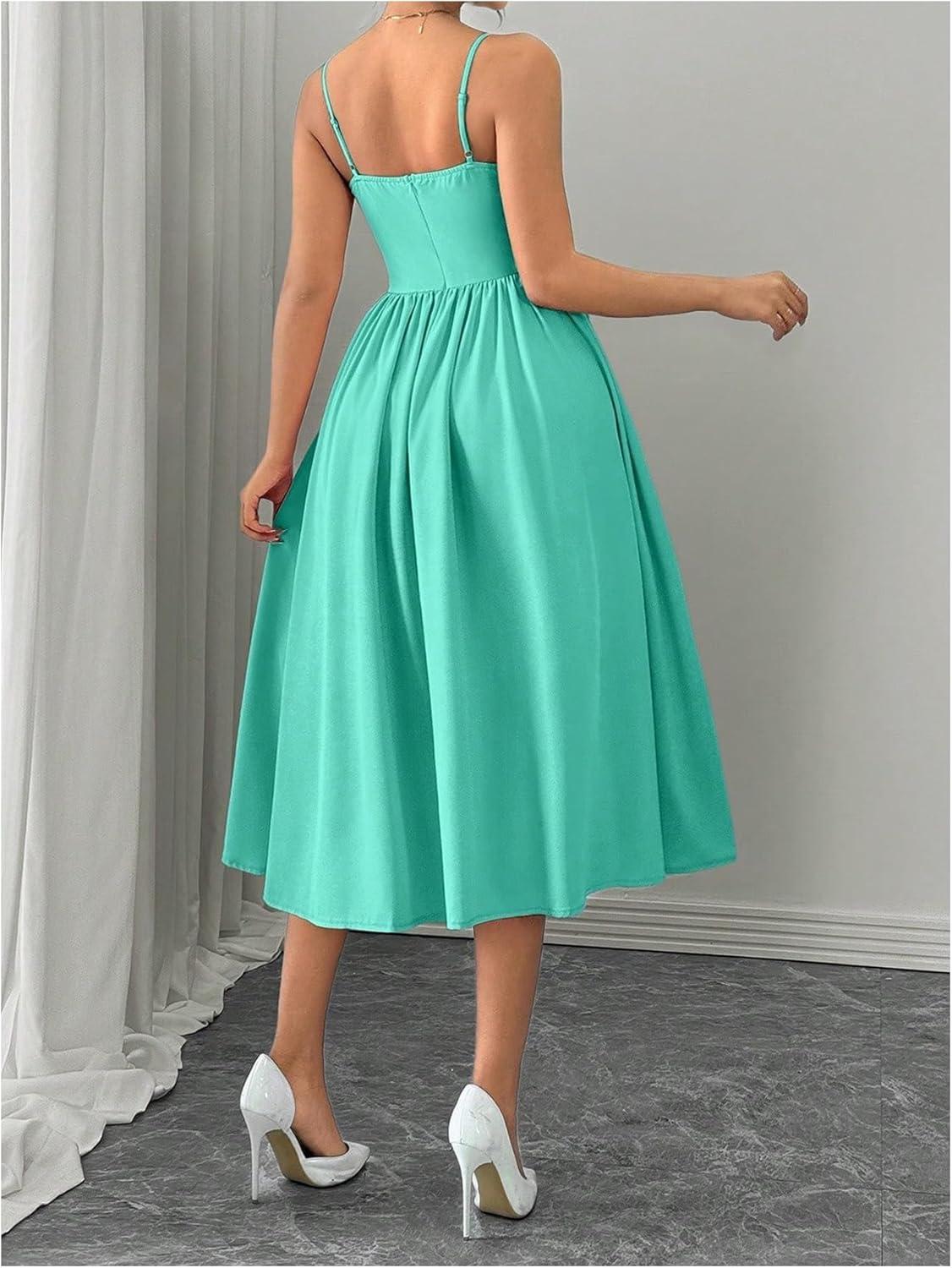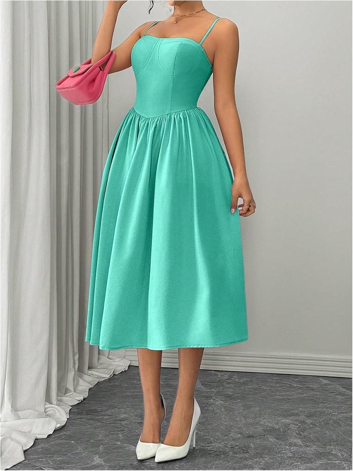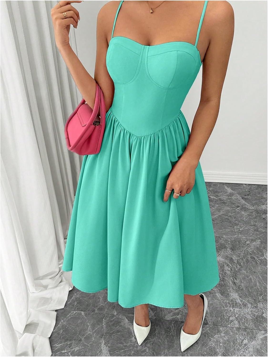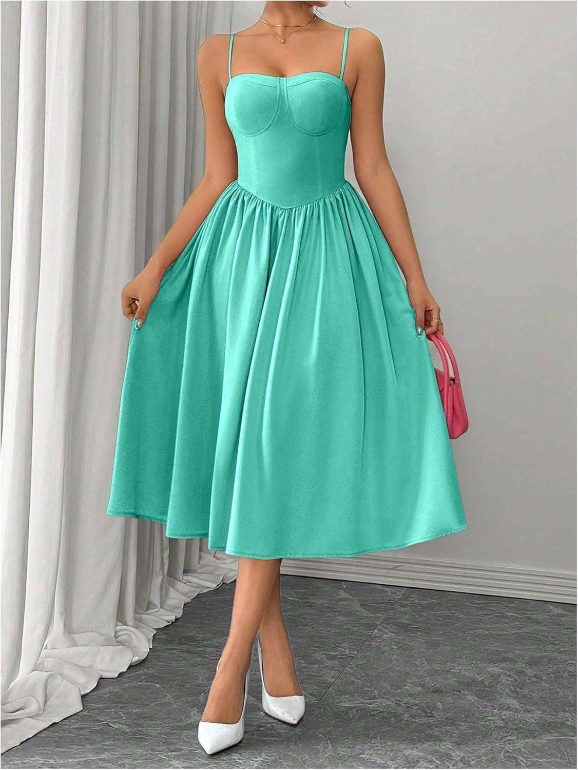 SOLY HUX Women’s Sleeveless Midi Corset Dress Flared A Line Flowy Party Cami Dresses(Plain Mint Green)