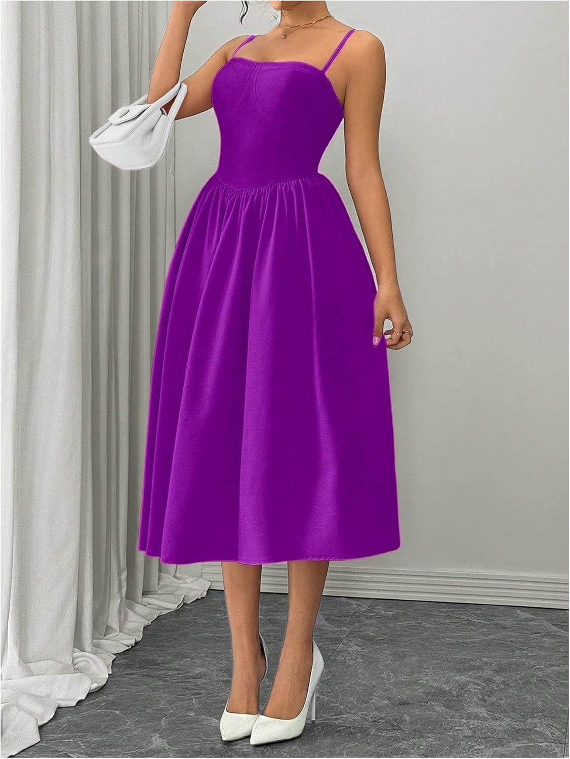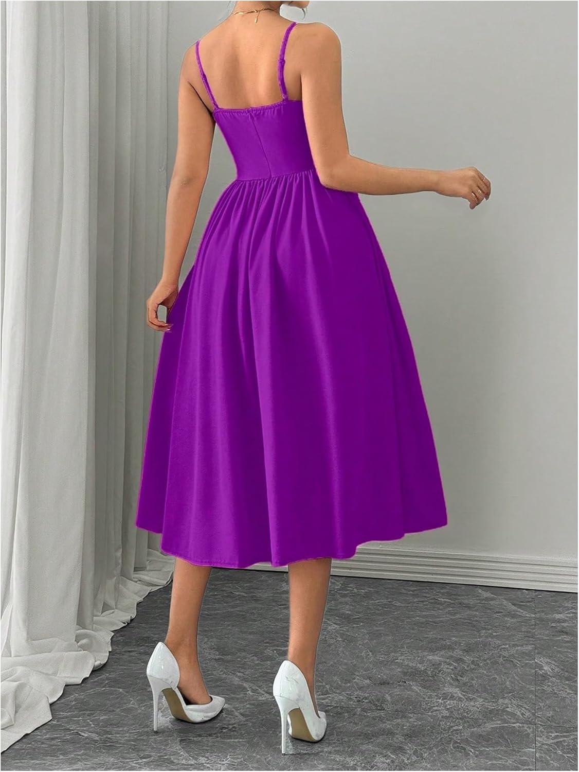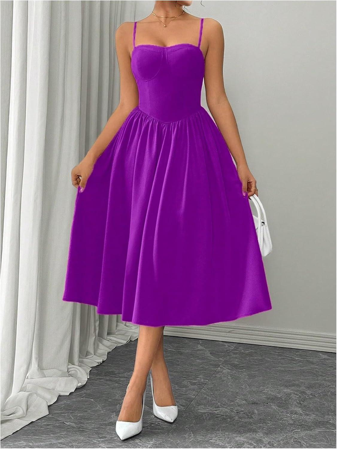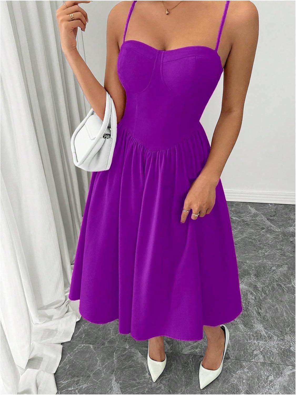 SOLY HUX Women’s Sleeveless Midi Corset Dress Flared A Line Flowy Party Cami Dresses(Plain Violet Purple)