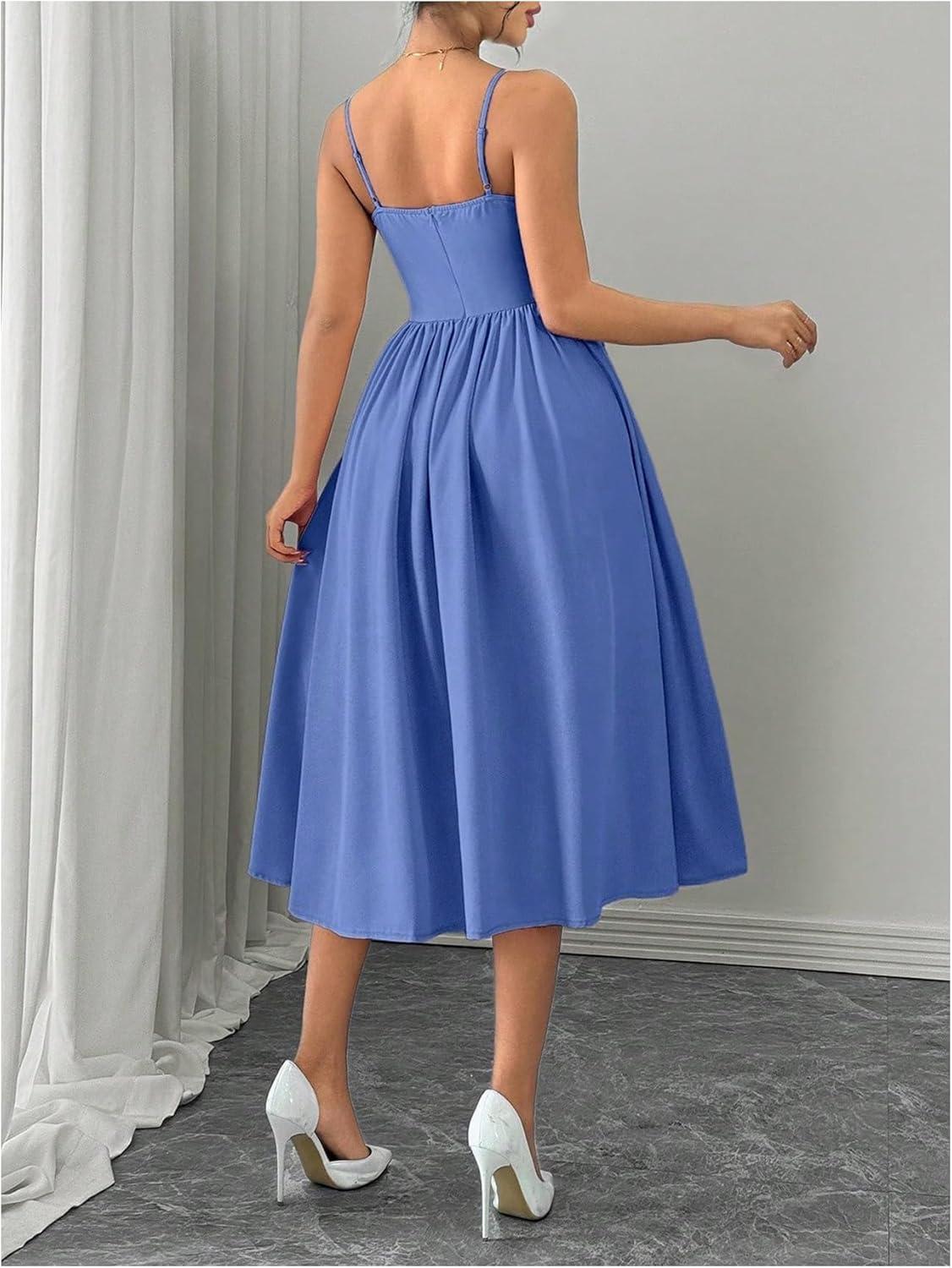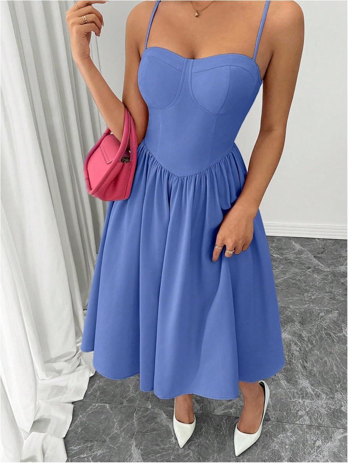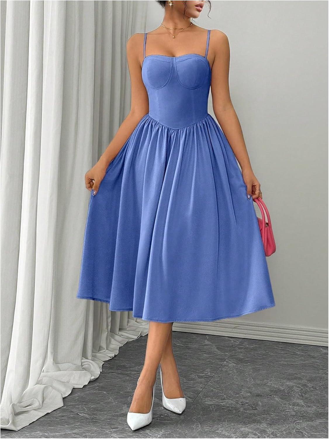 SOLY HUX Women’s Sleeveless Midi Corset Dress Flared A Line Flowy Party Cami Dresses(Pure Teal Blue)