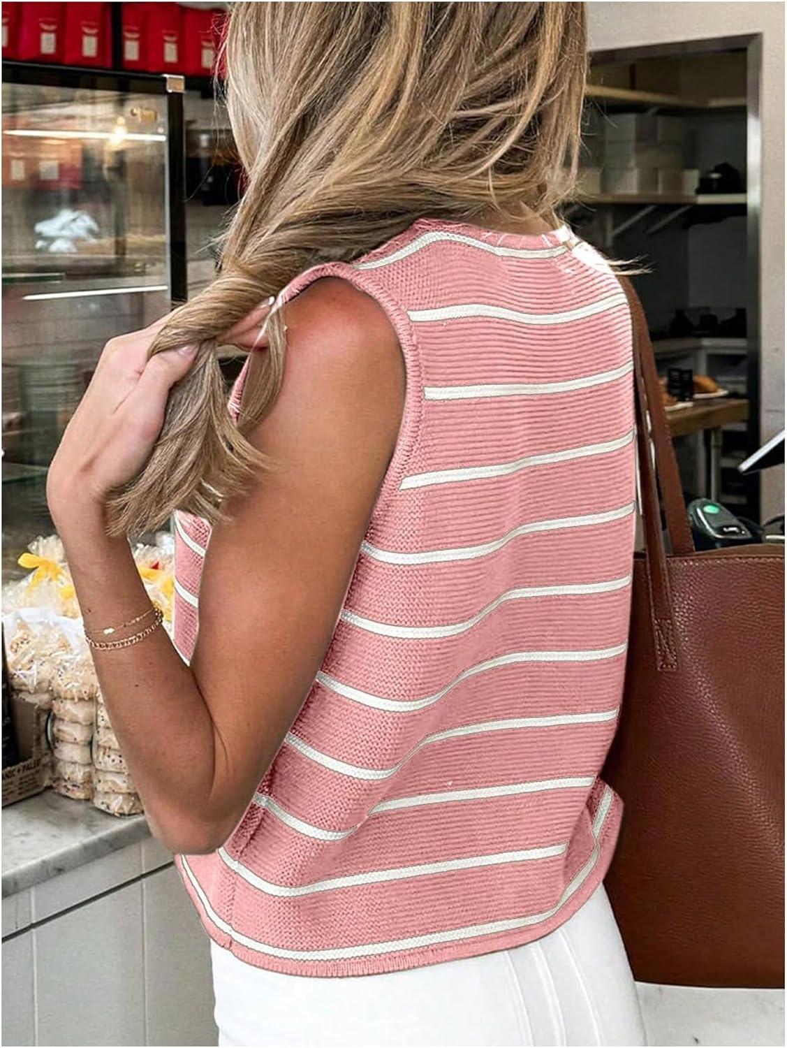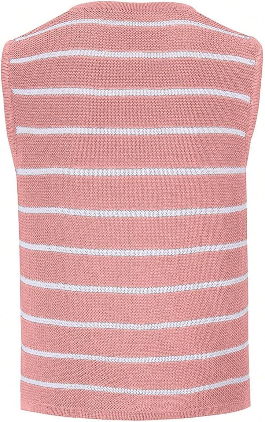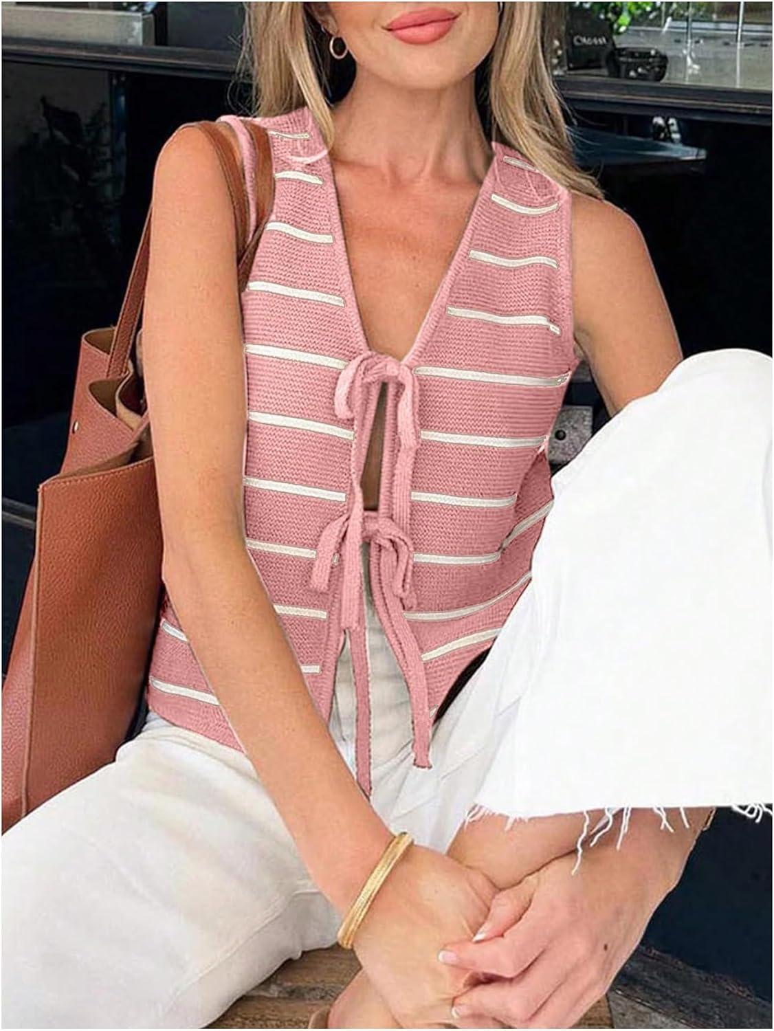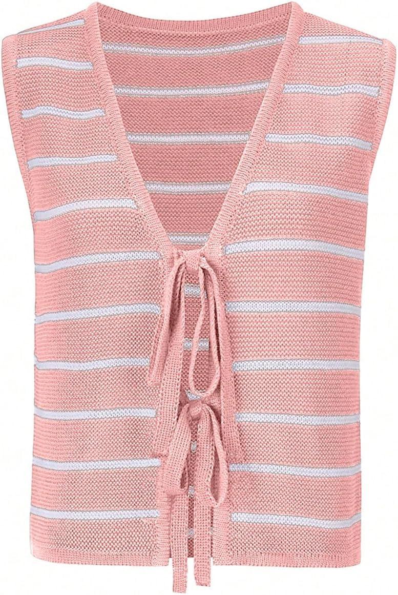 SOLY HUX Women’s Sleeveless Striped Sweater Vest V Neck Tie Bow Crochet Knit Tank Tops Casual Loose Cardigan(Pink Striped)