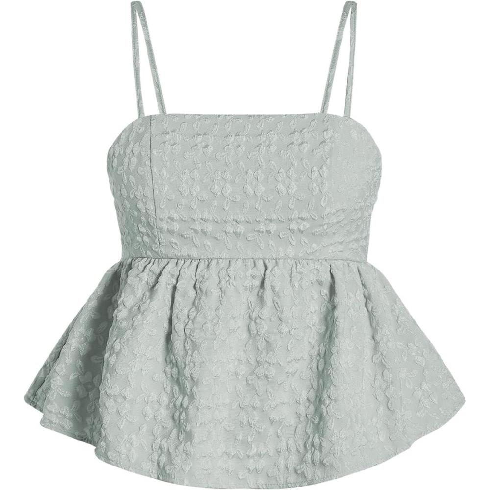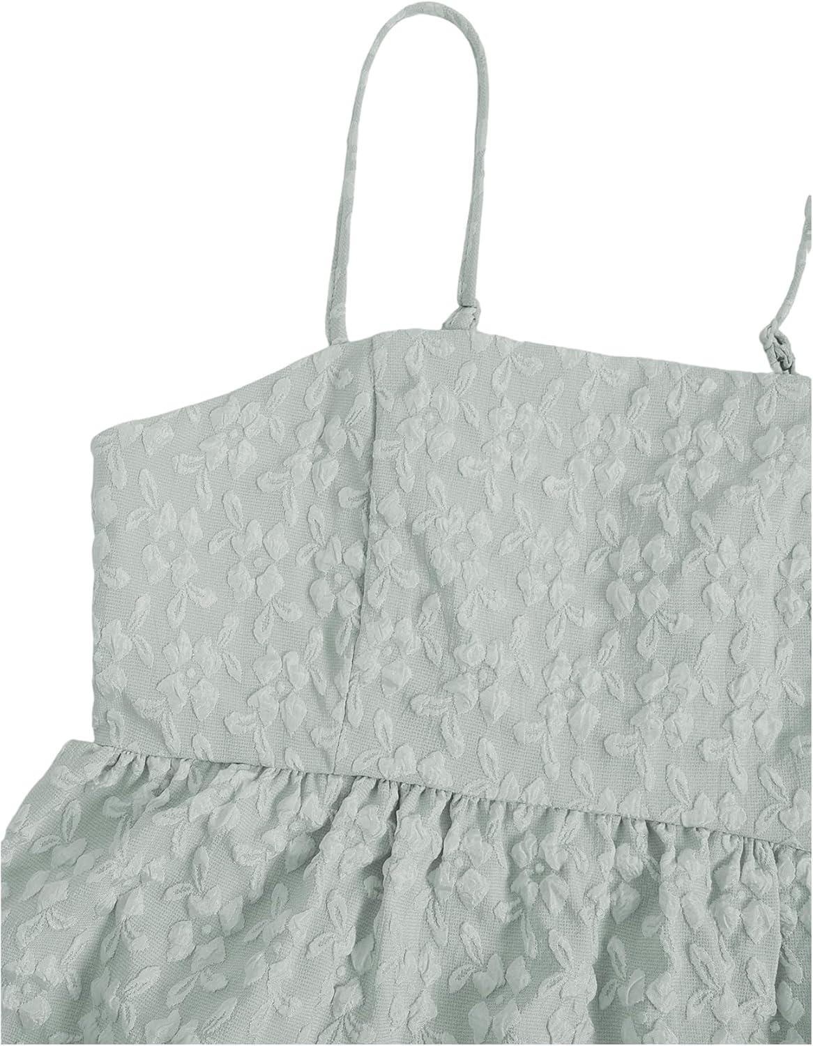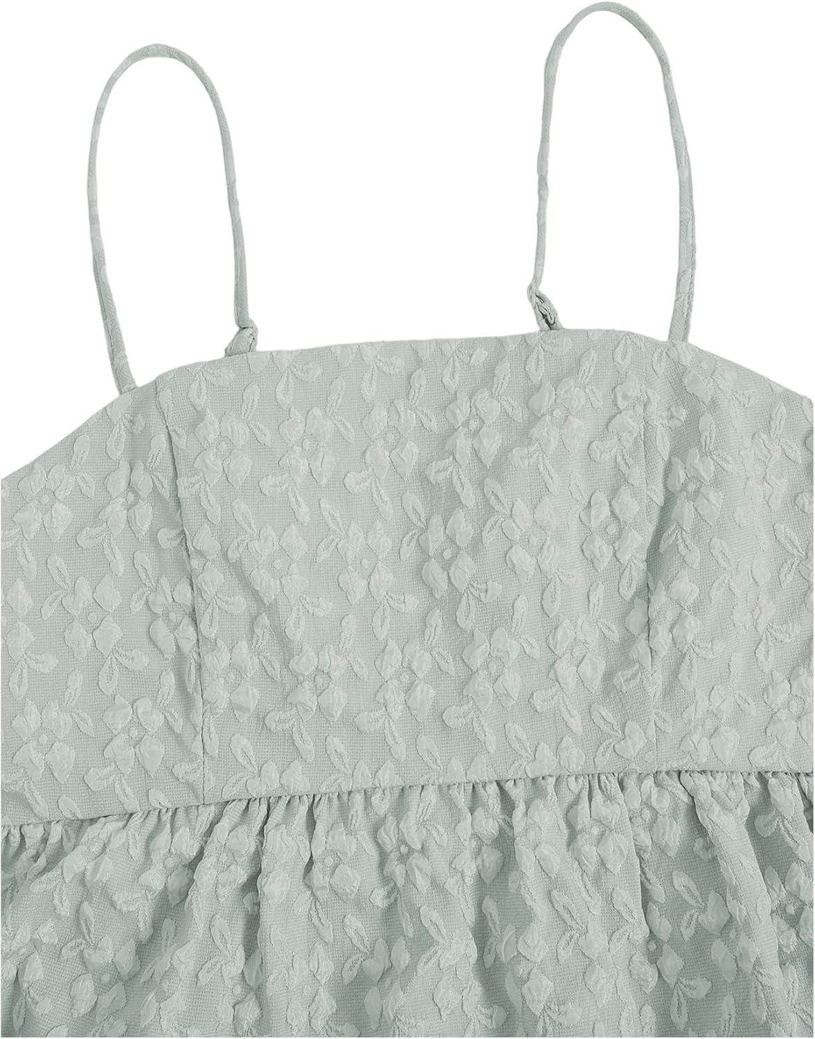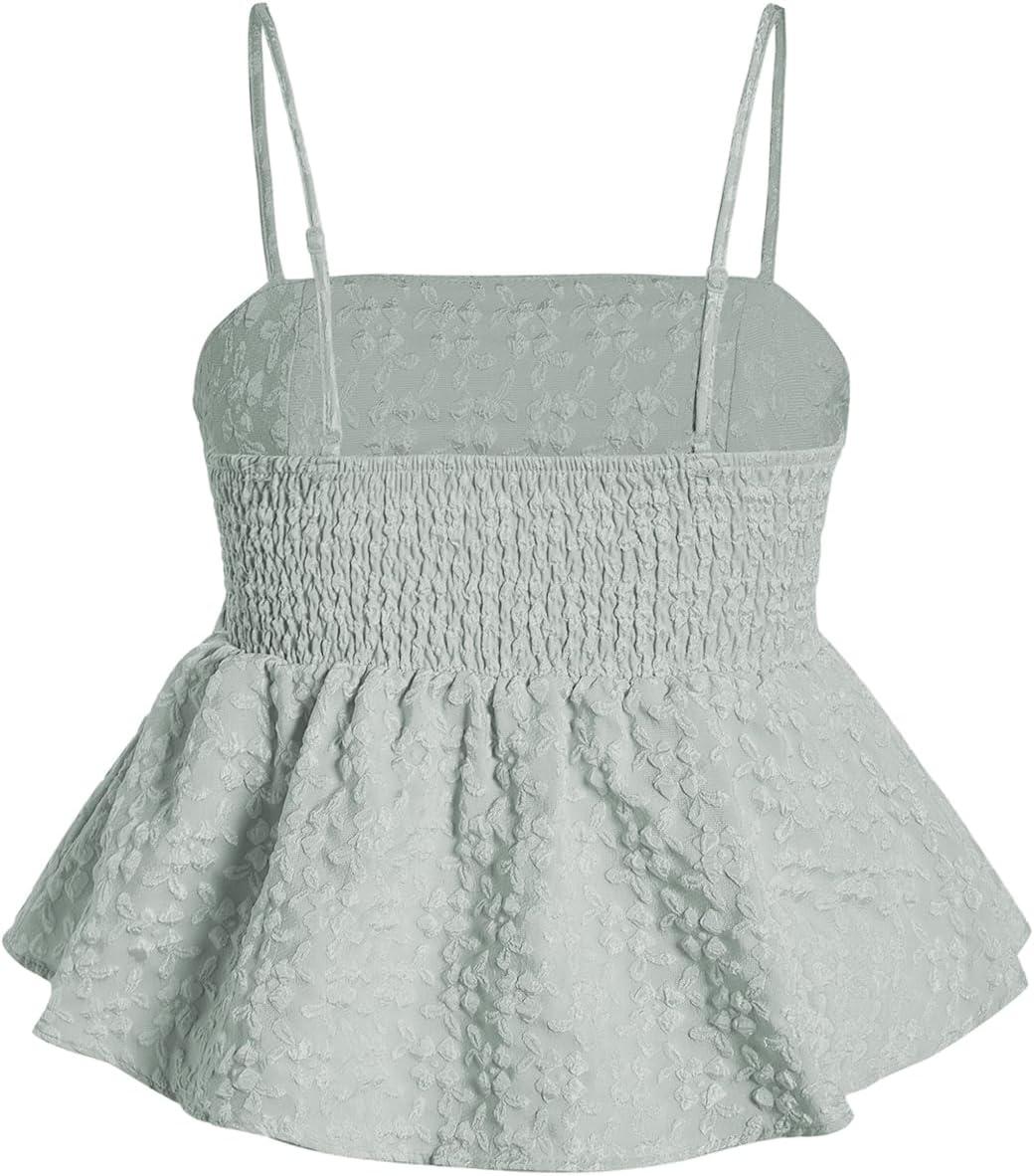 SOLY HUX Women’s Spaghetti Strap Ruffle Hem Peplum Cami Top Jacquard Camisole(Plain Green Jacquard)