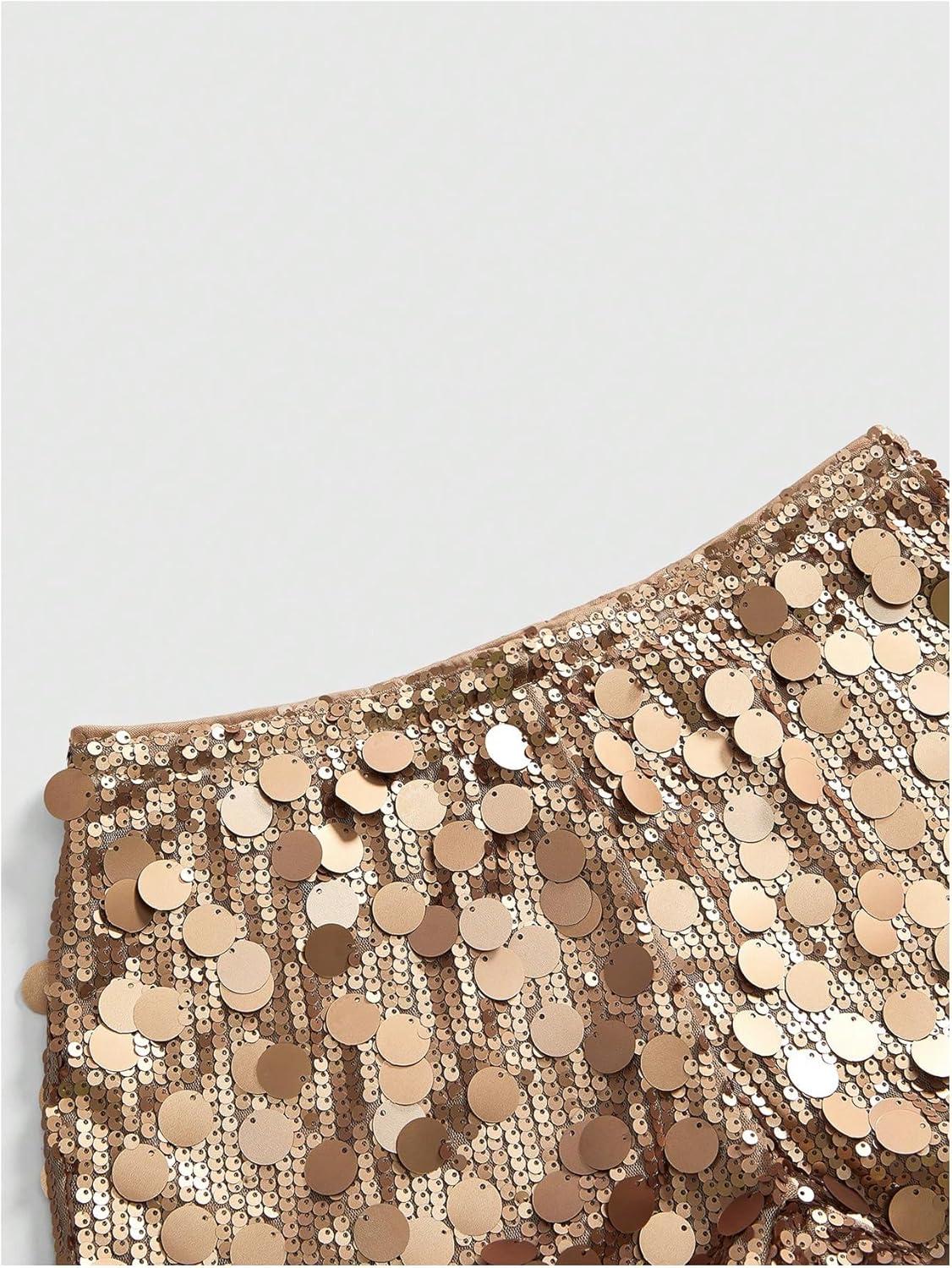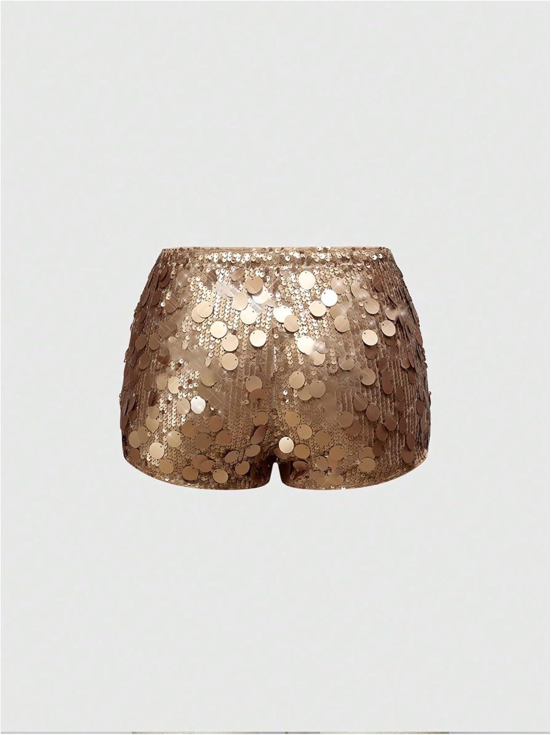 SOLY HUX Women’s Sparkly Sequin Micro Shorts Y2k Low Rise Mini Booty Shorts Rave Clubwear(Plain Gold)