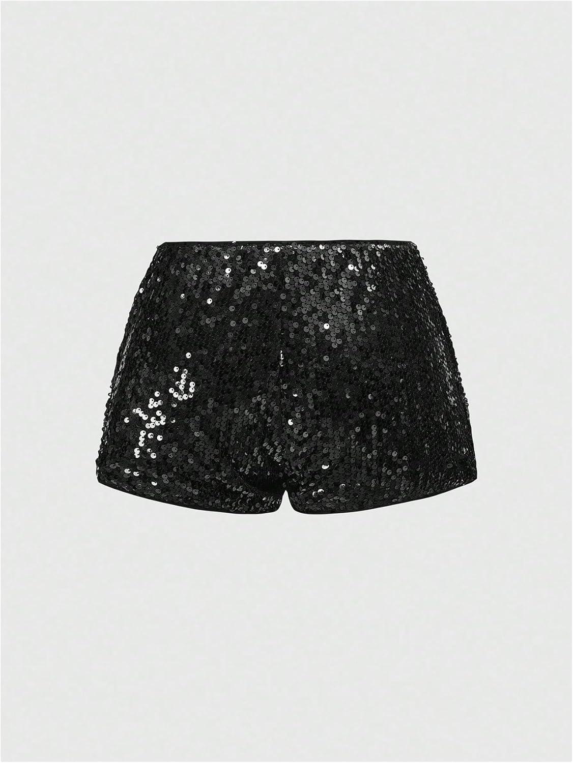 SOLY HUX Women’s Sparkly Sequin Micro Shorts Y2k Low Rise Mini Booty Shorts Rave Clubwear(Pure Black Sequin)