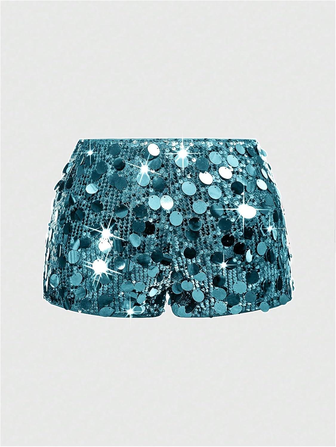 SOLY HUX Women’s Sparkly Sequin Micro Shorts Y2k Low Rise Mini Booty Shorts Rave Clubwear(Pure Blue Sequin)
