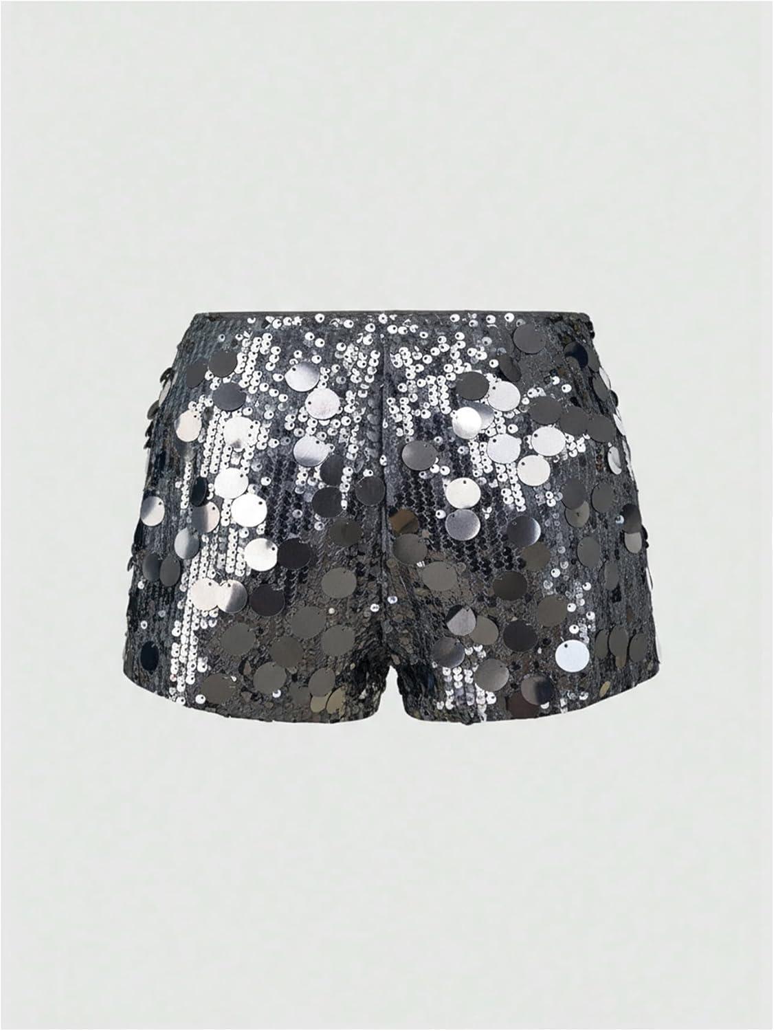 SOLY HUX Women’s Sparkly Sequin Micro Shorts Y2k Low Rise Mini Booty Shorts Rave Clubwear(Pure Dark Grey)