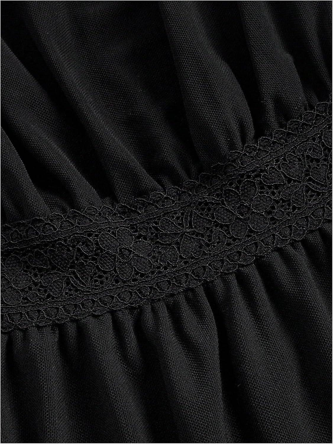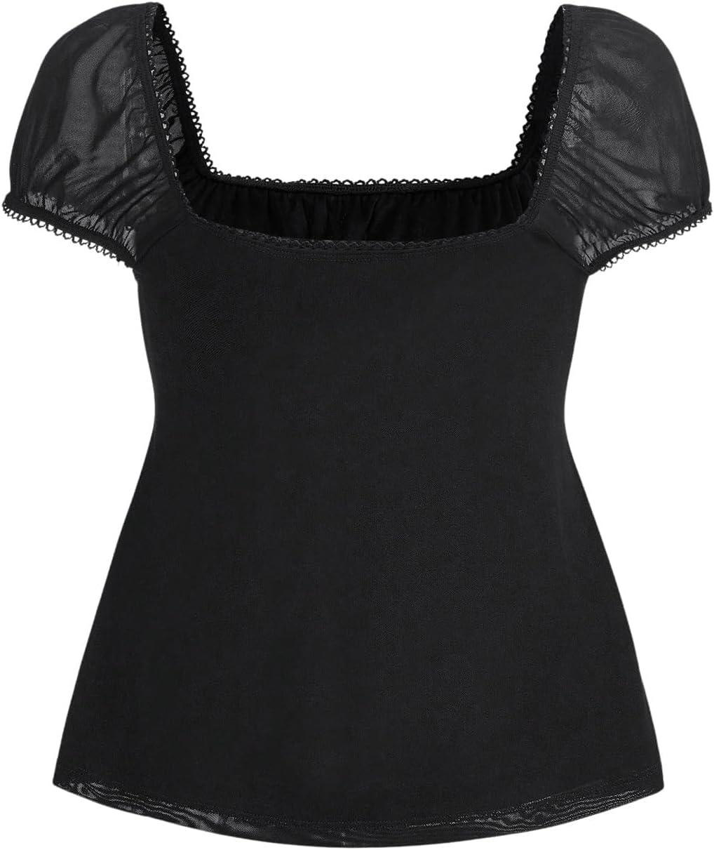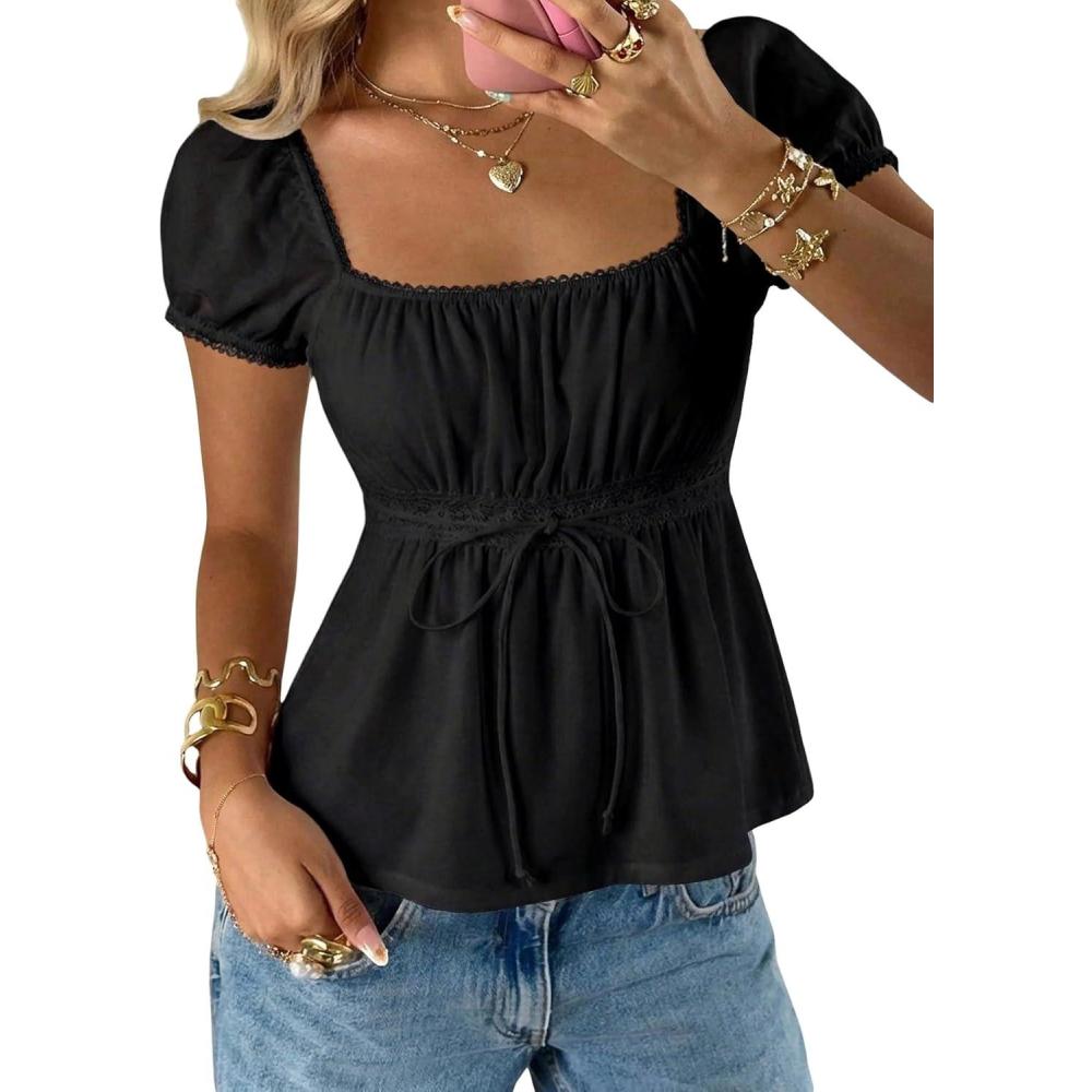 SOLY HUX Women’s Square Neck Short Sleeve Peplum Tops Tie Front Summer Teen Girls Babydoll Top T Shirt(Solid Black)