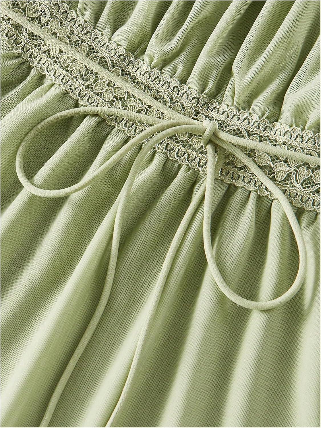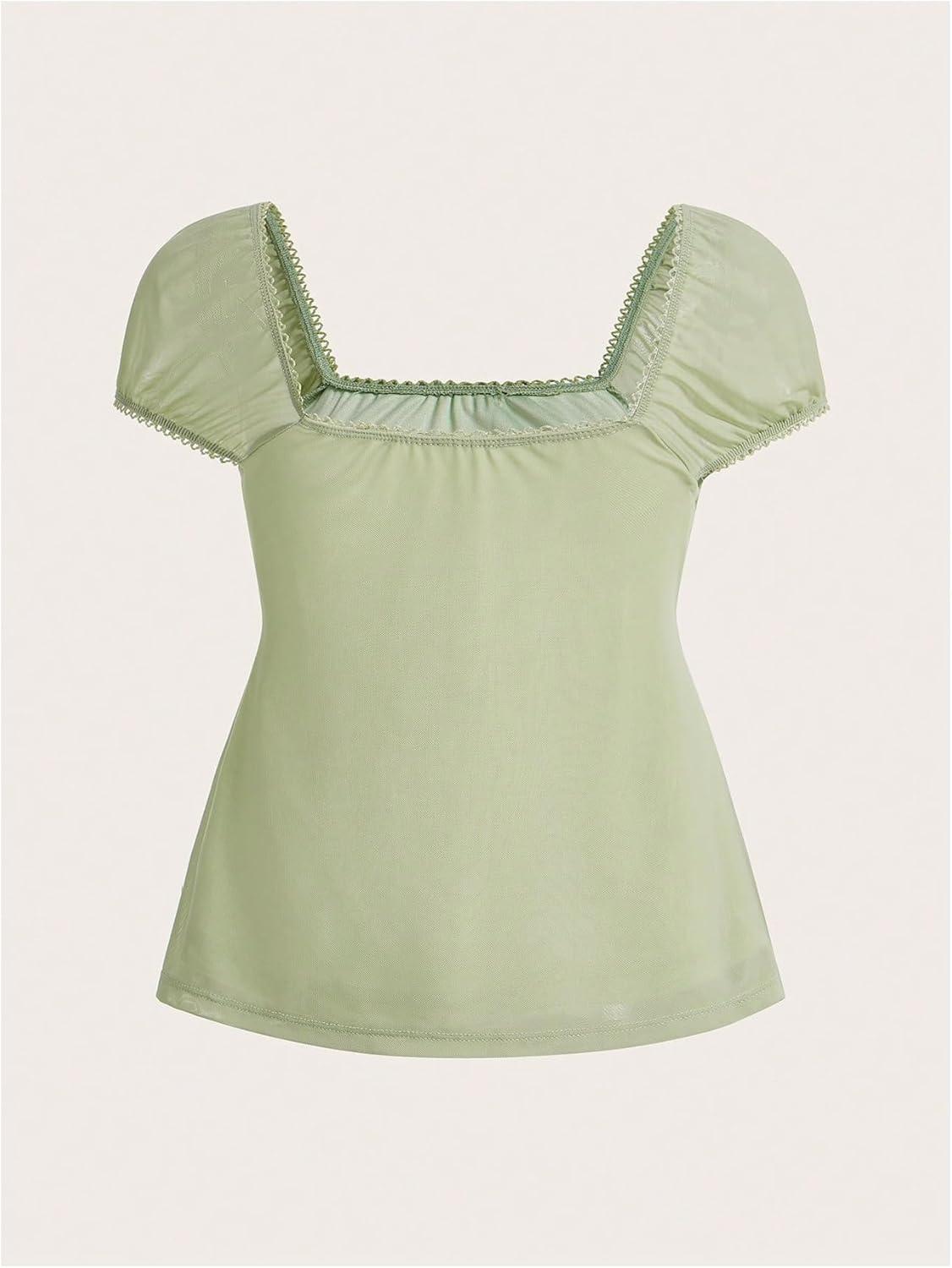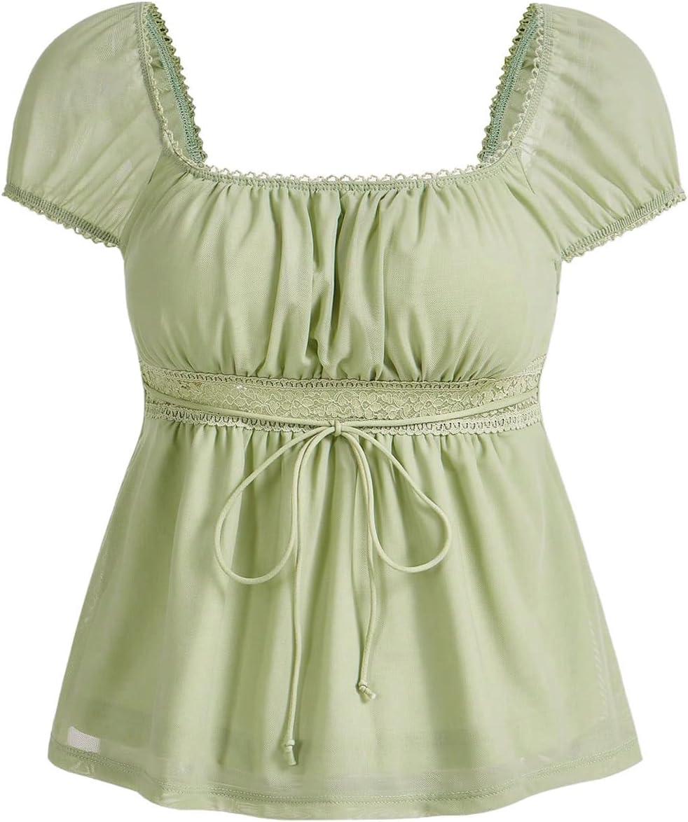 SOLY HUX Women’s Square Neck Short Sleeve Peplum Tops Tie Front Summer Teen Girls Babydoll Top T Shirt(Solid Green)
