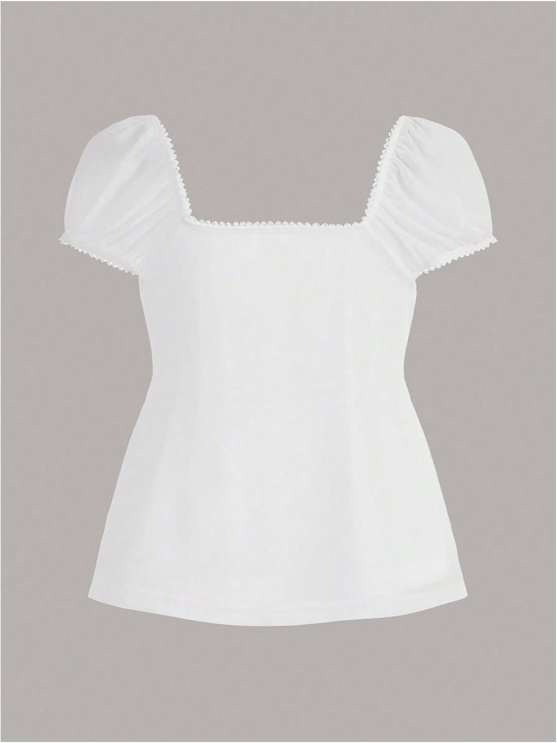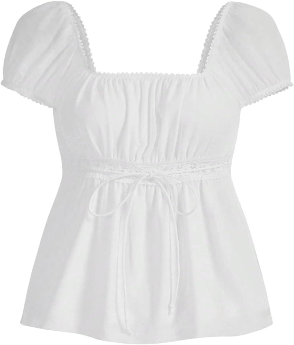 SOLY HUX Women’s Square Neck Short Sleeve Peplum Tops Tie Front Summer Teen Girls Babydoll Top T Shirt(Solid White)