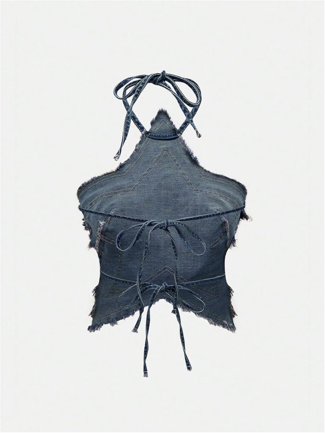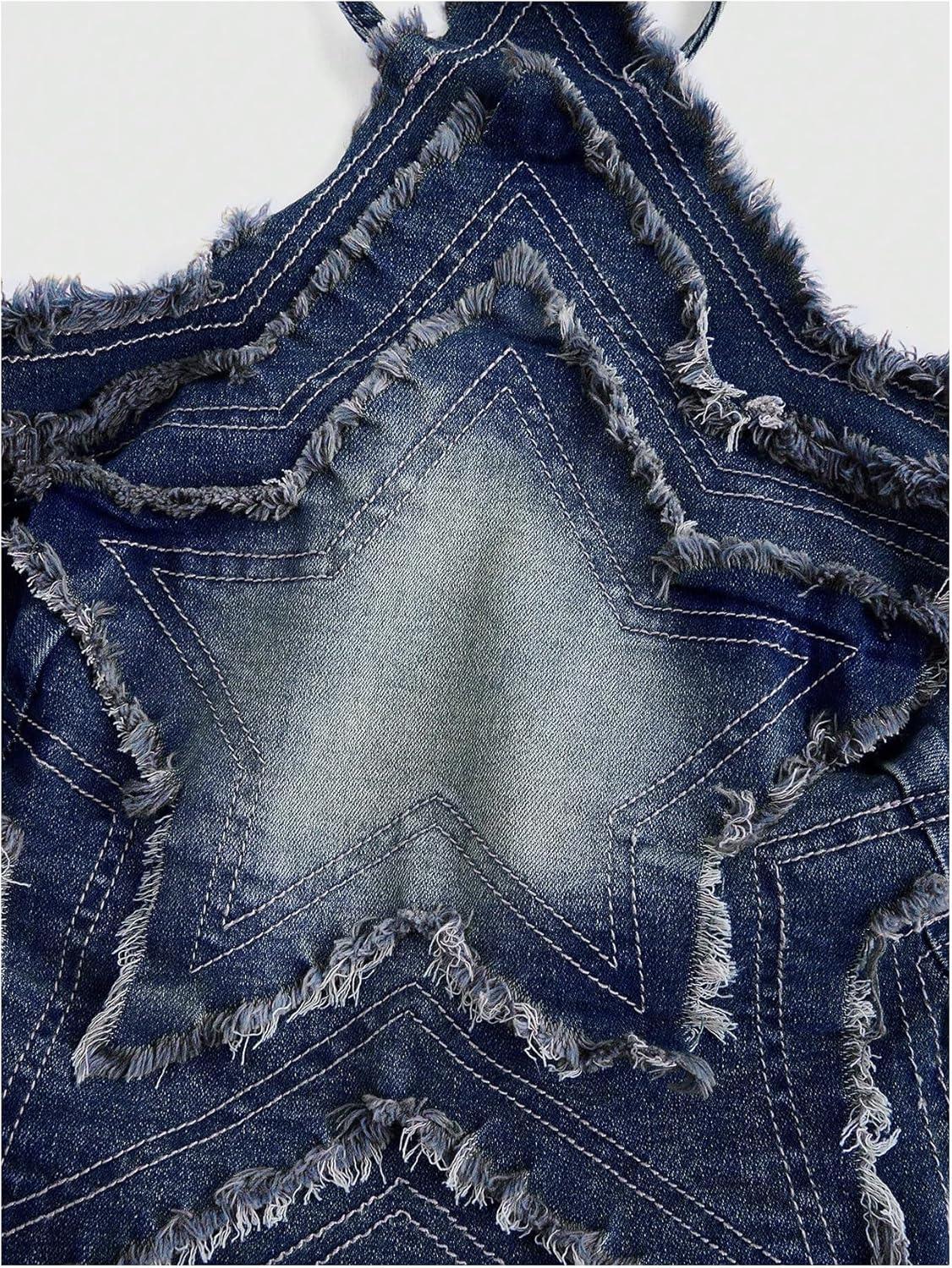 SOLY HUX Women’s Star Halter Tops Tie Backless Y2k Distressed Denim Cami Crop Tops(Solid Blue)