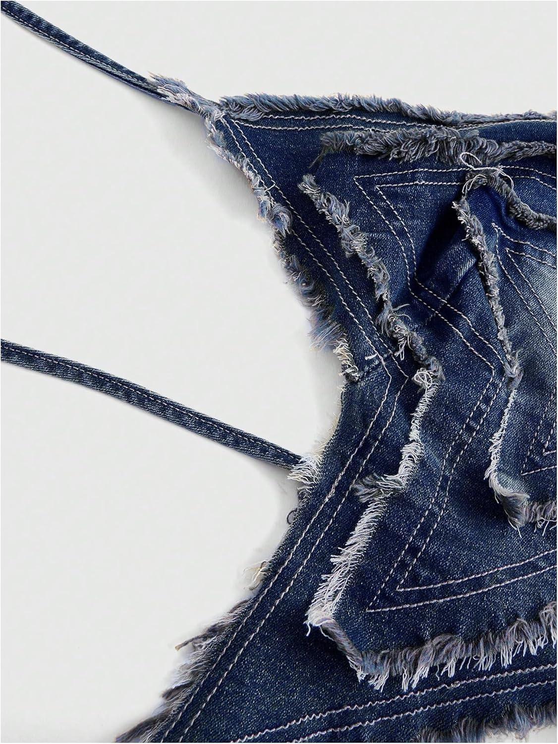 SOLY HUX Women’s Star Halter Tops Tie Backless Y2k Distressed Denim Cami Crop Tops(Pure Dark Grey)