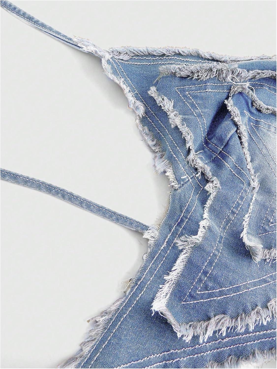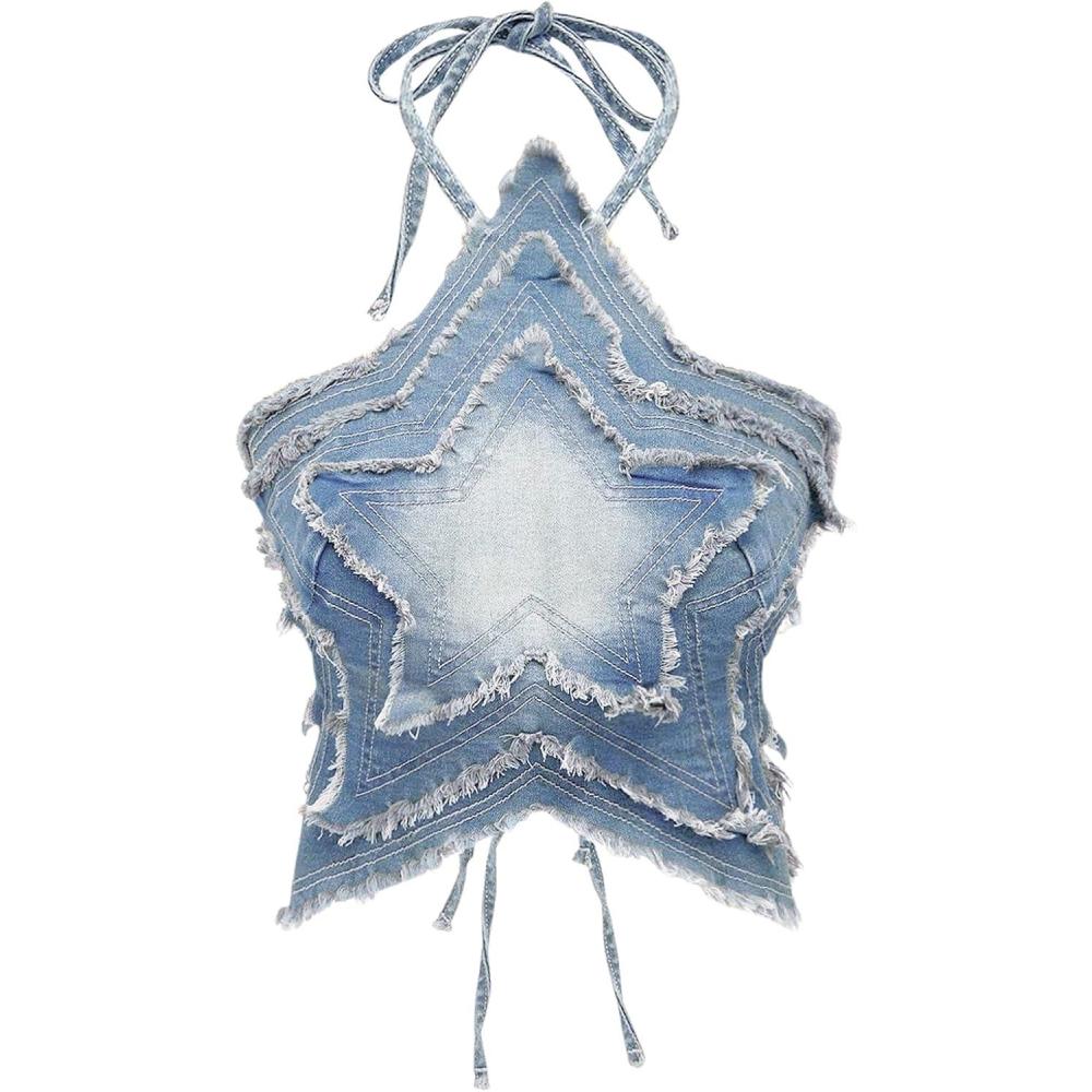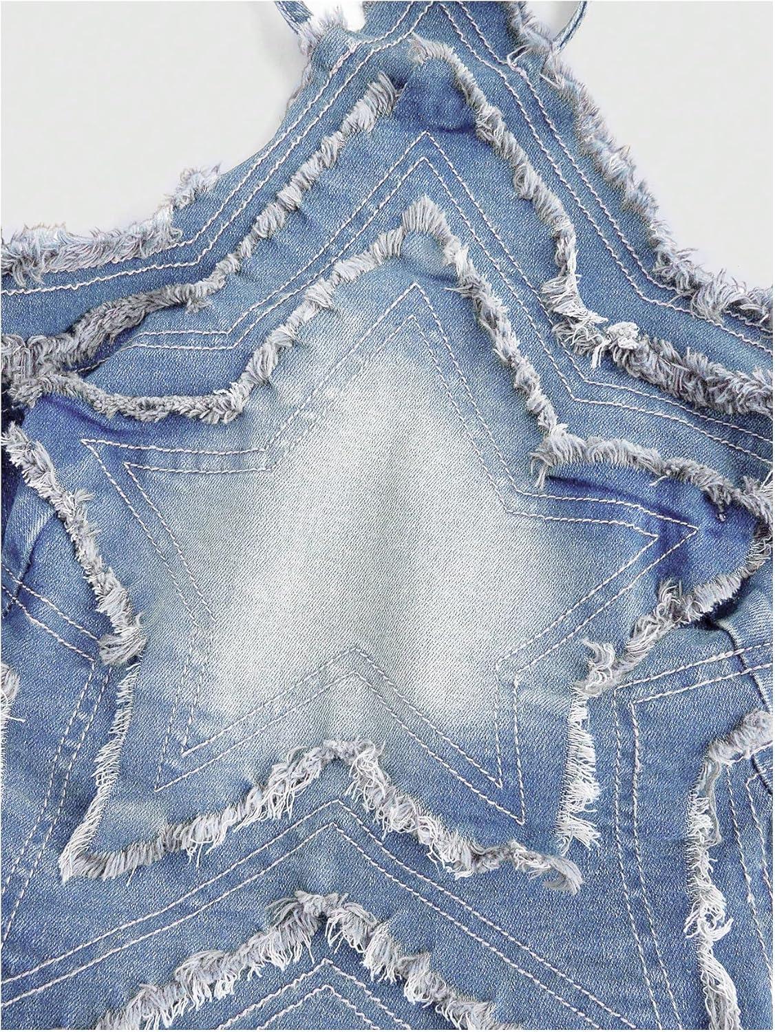 SOLY HUX Women’s Star Halter Tops Tie Backless Y2k Distressed Denim Cami Crop Tops(Solid Blue)