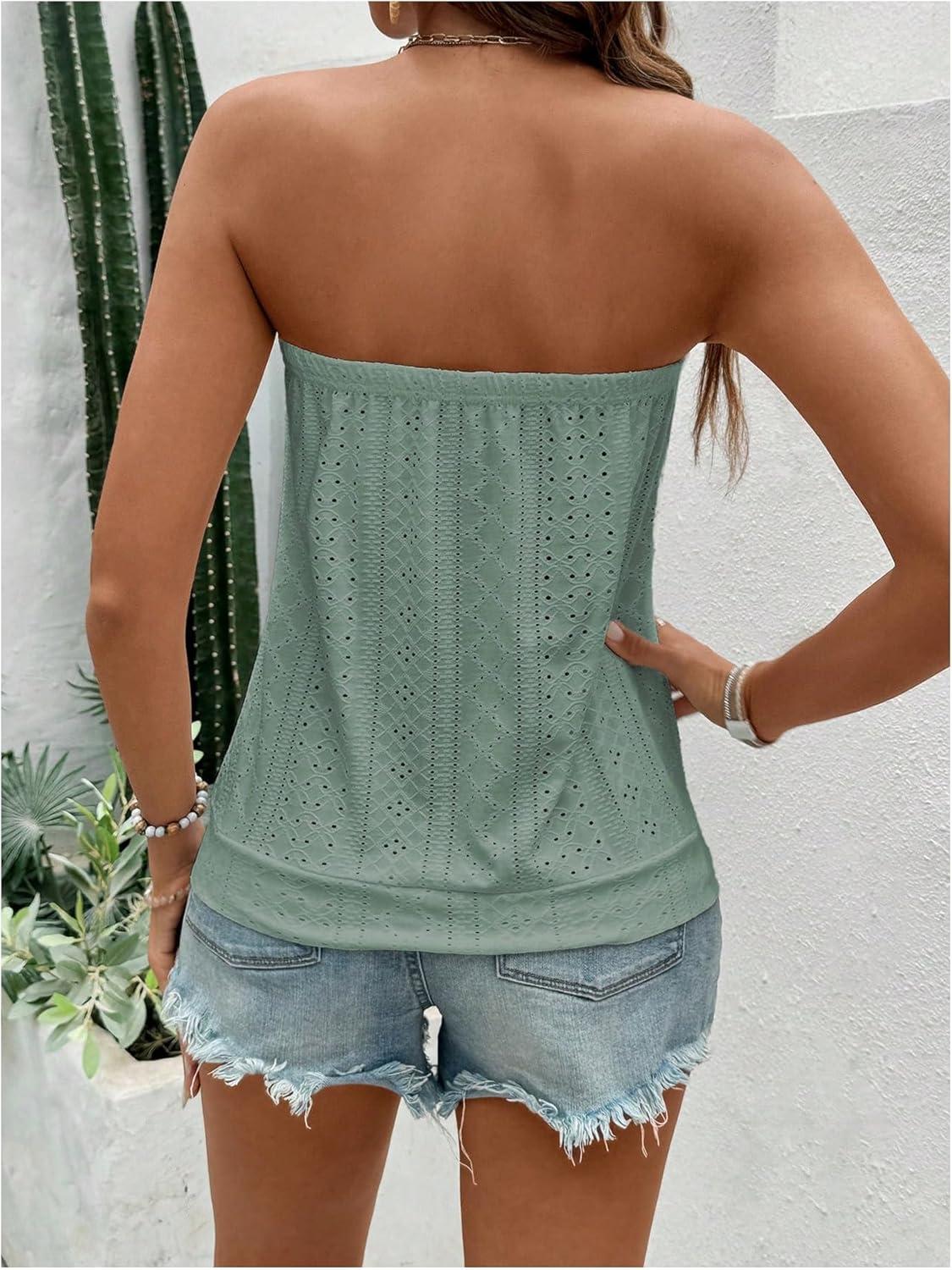 SOLY HUX Women’s Strapless Bandeau Tank Top Casual Summer Sleeveless Eyelet Tube Tops(Mint Green)