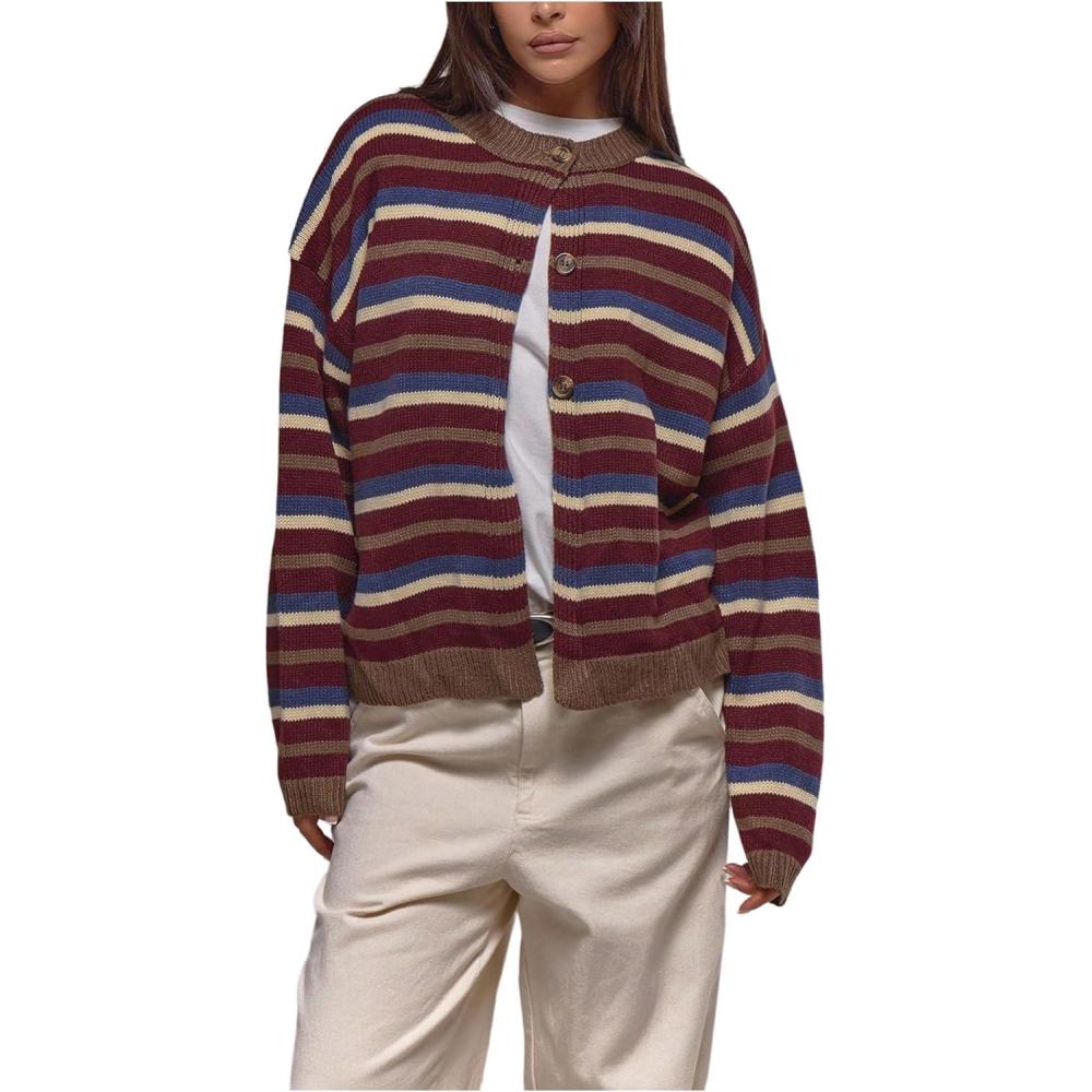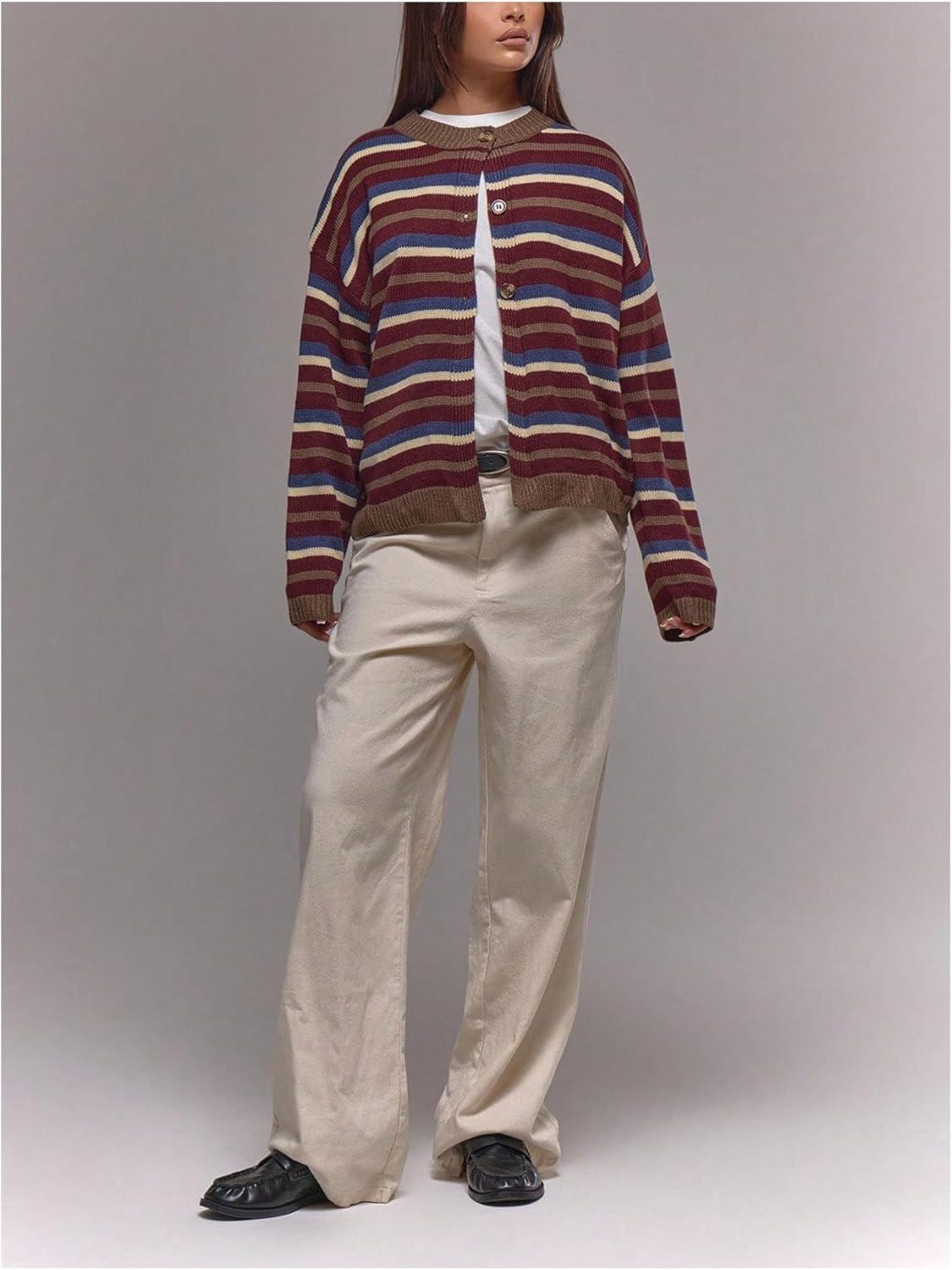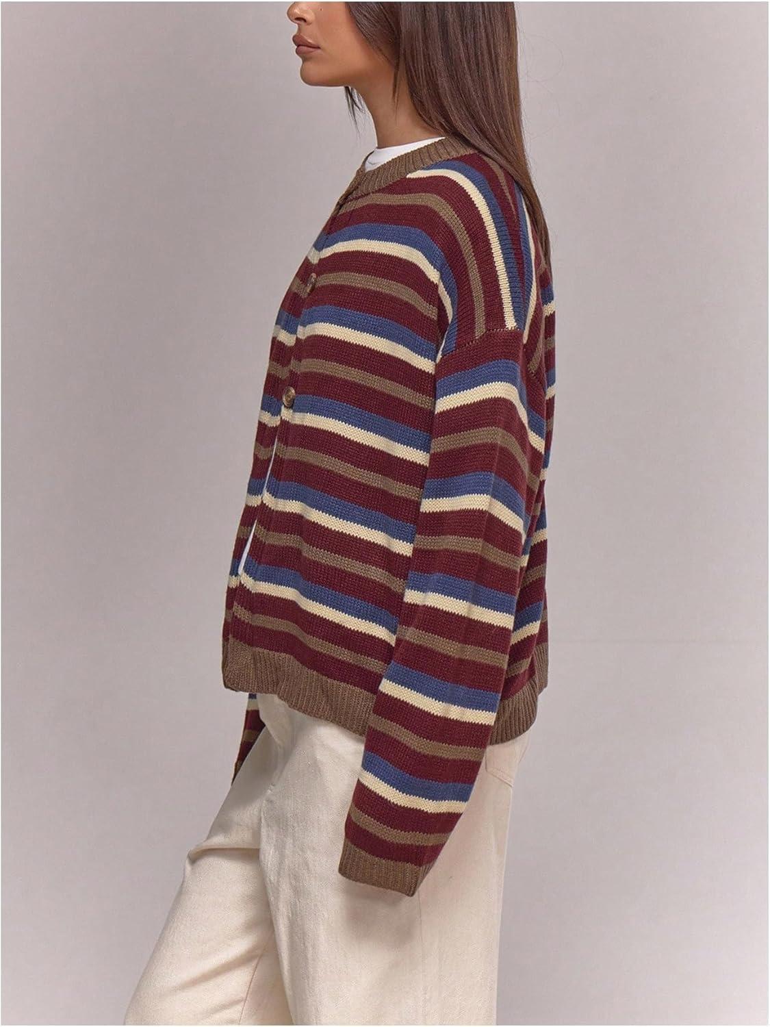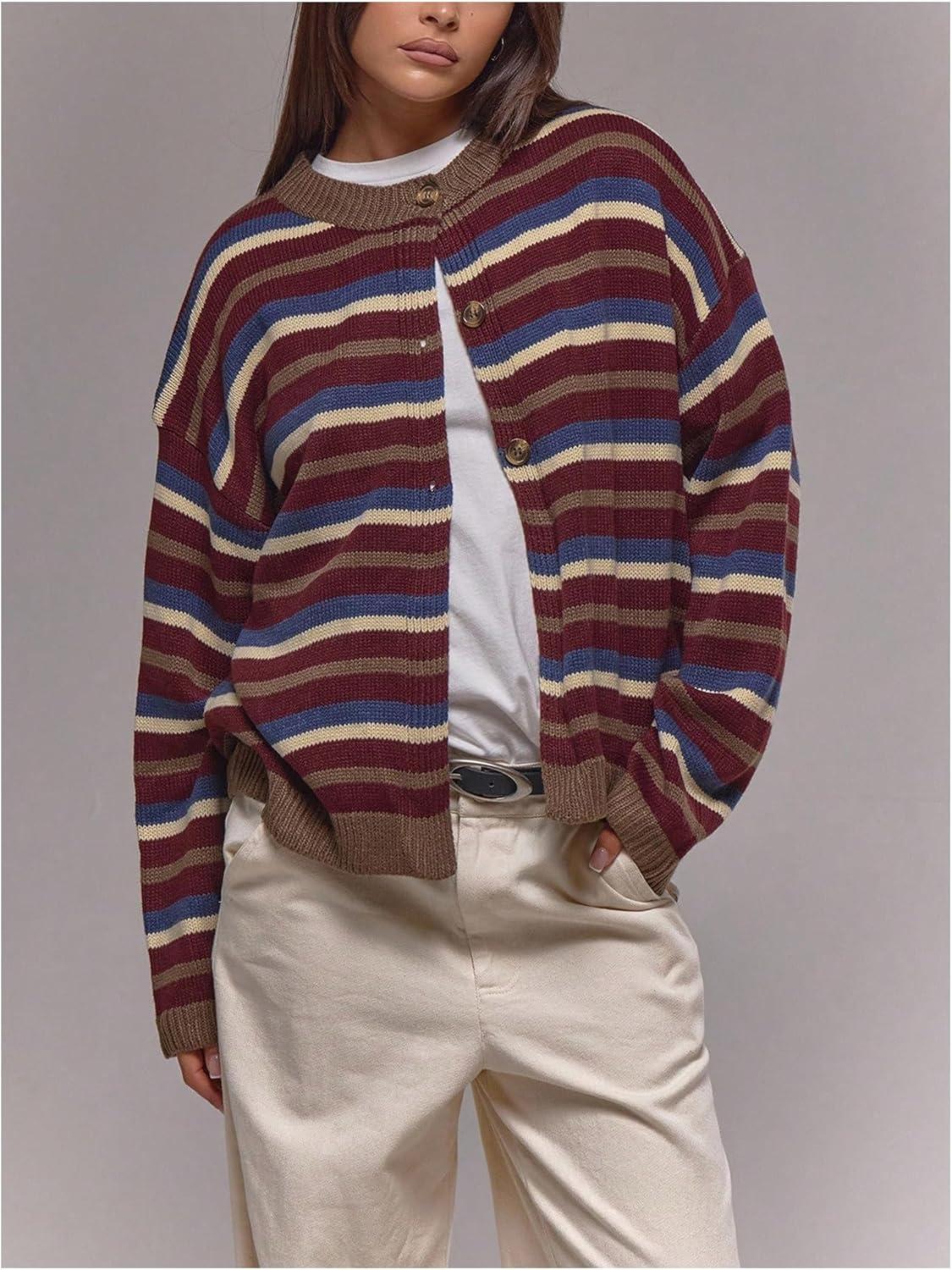 SOLY HUX Women’s Striped Cardigan Sweater Color Block Button Down Long Sleeve Drop Shoulder Oversized Cardigans(Apricot Striped)