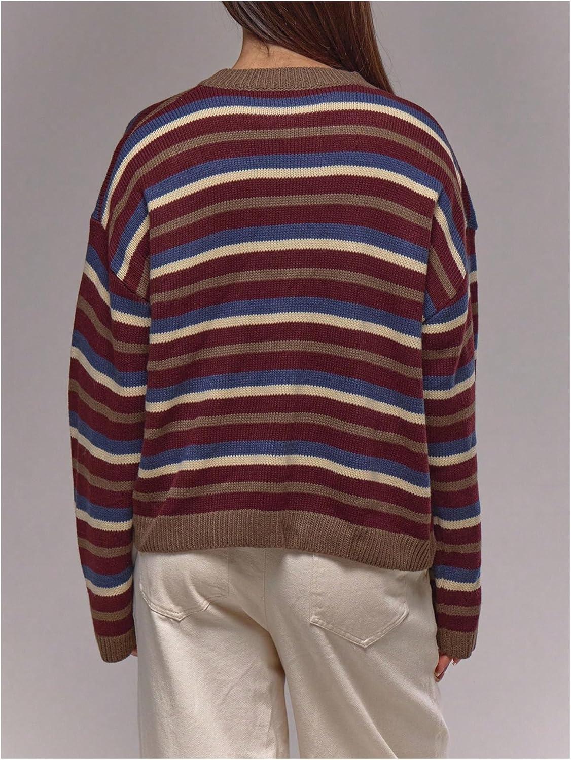 image:imageSOLY HUX Womens Striped Cardigan Sweater Color Block Button Down Long Sleeve Drop Shoulder Oversized CardigansApricot Striped