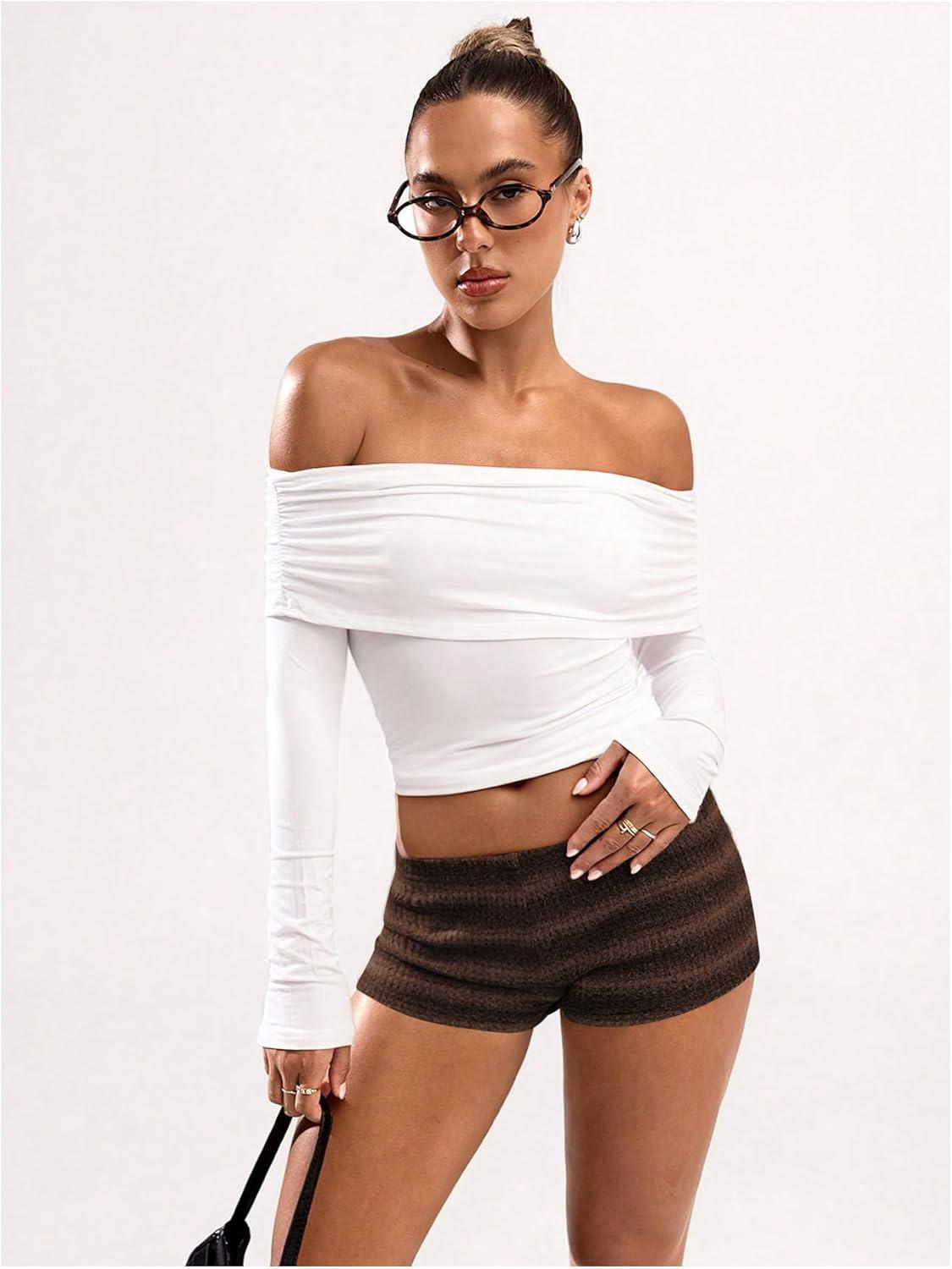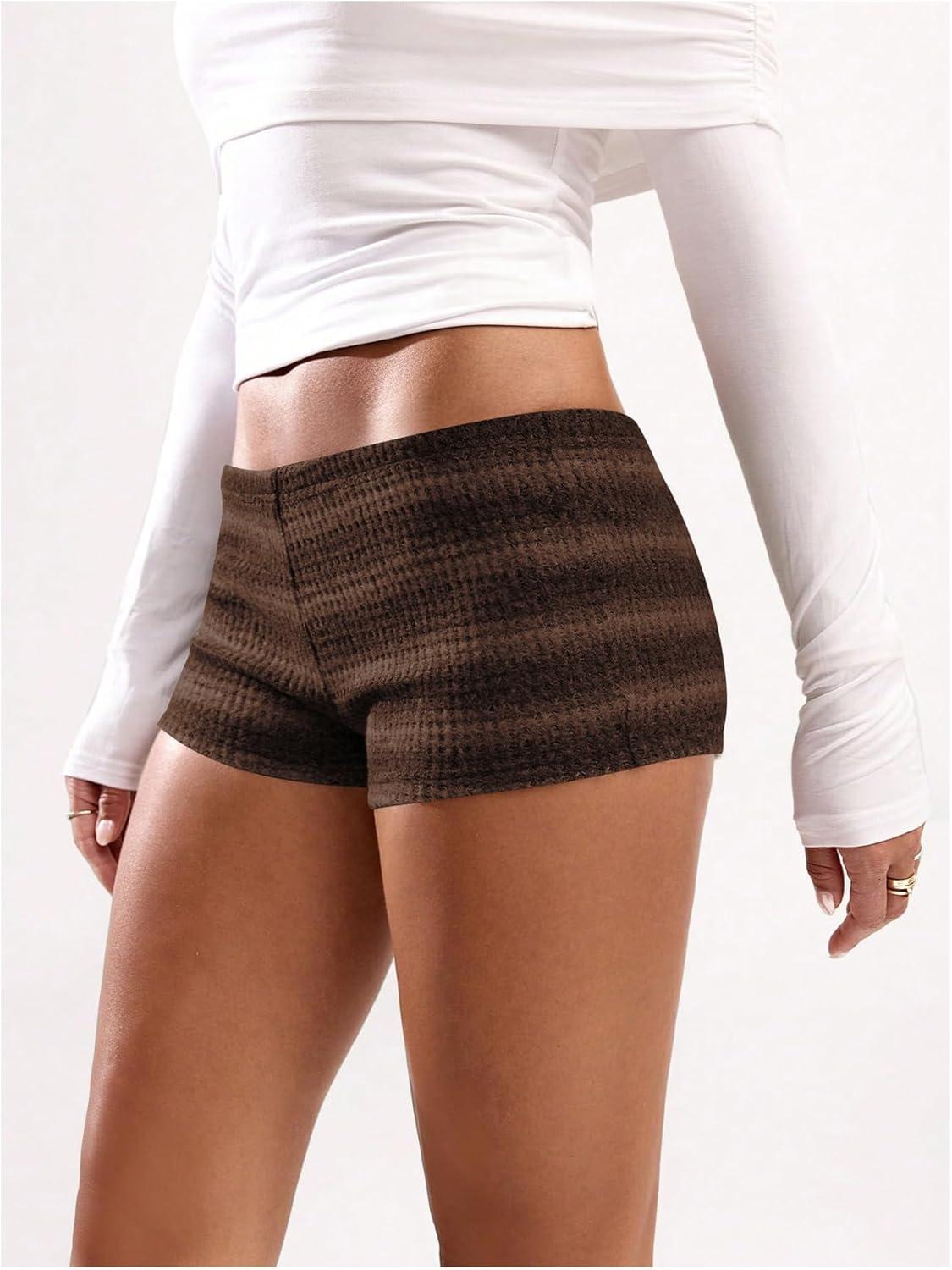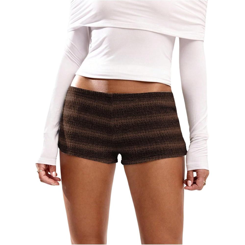 SOLY HUX Women’s Striped Micro Shorts Y2k Knit Low Rise Booty Mini Shorts Color Block Stretchy Loungewear(Brown Striped)