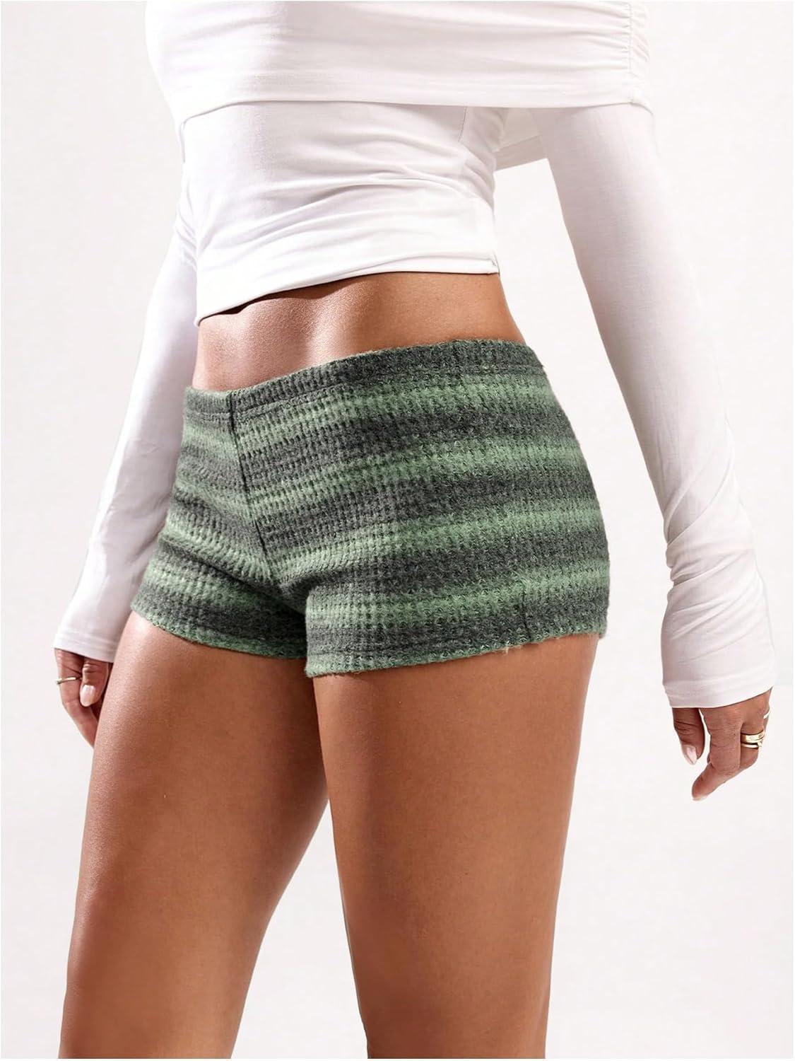 SOLY HUX Women’s Striped Micro Shorts Y2k Knit Low Rise Booty Mini Shorts Color Block Stretchy Loungewear(Dark Green Stripe)