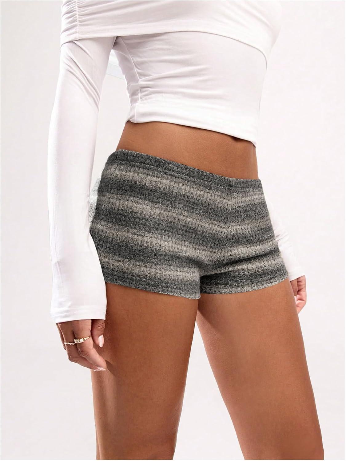 SOLY HUX Women’s Striped Micro Shorts Y2k Knit Low Rise Booty Mini Shorts Color Block Stretchy Loungewear(Grey Striped)