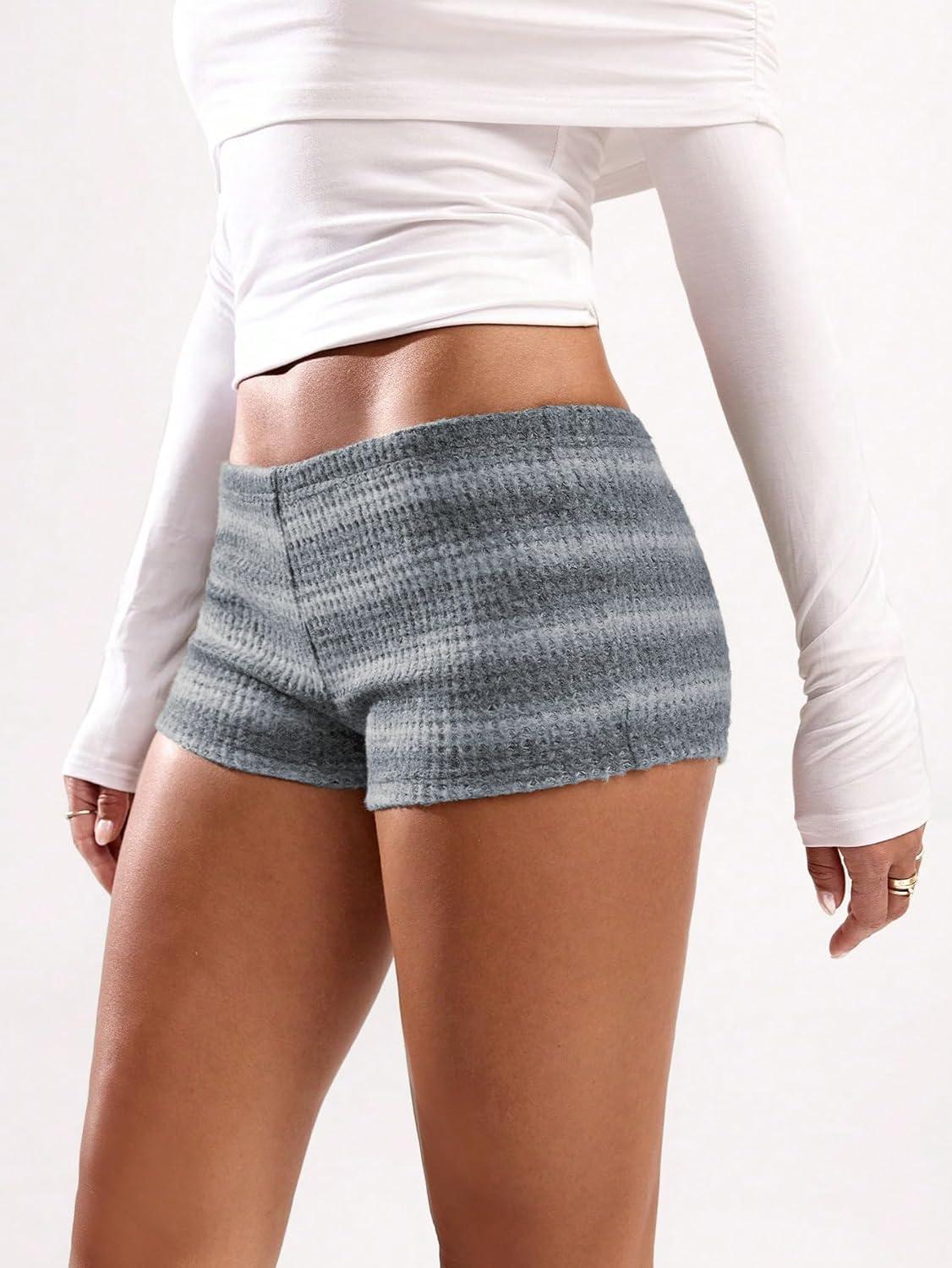 SOLY HUX Women’s Striped Micro Shorts Y2k Knit Low Rise Booty Mini Shorts Color Block Stretchy Loungewear(Grey Striped)