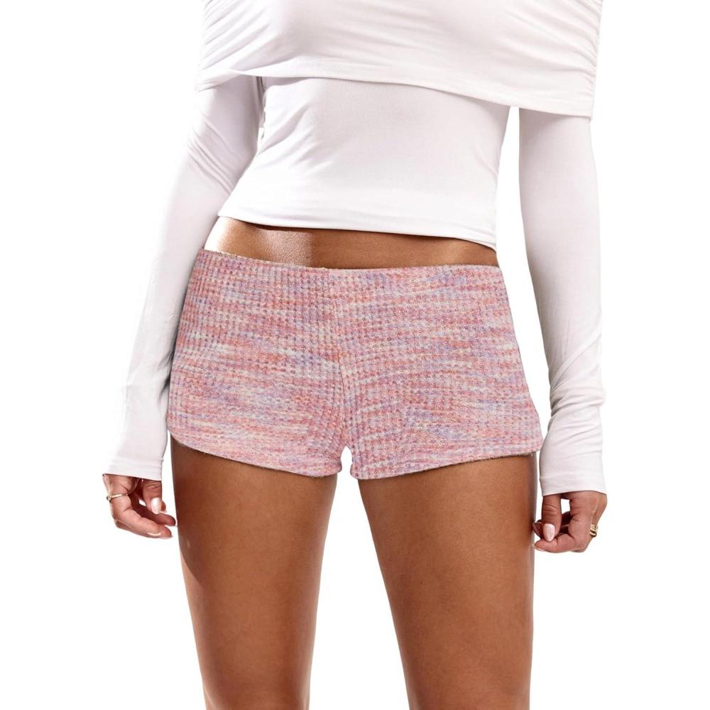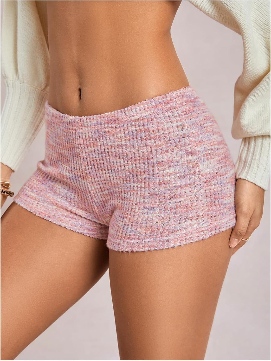 SOLY HUX Women’s Striped Micro Shorts Y2k Knit Low Rise Booty Mini Shorts Color Block Stretchy Loungewear(Pink)
