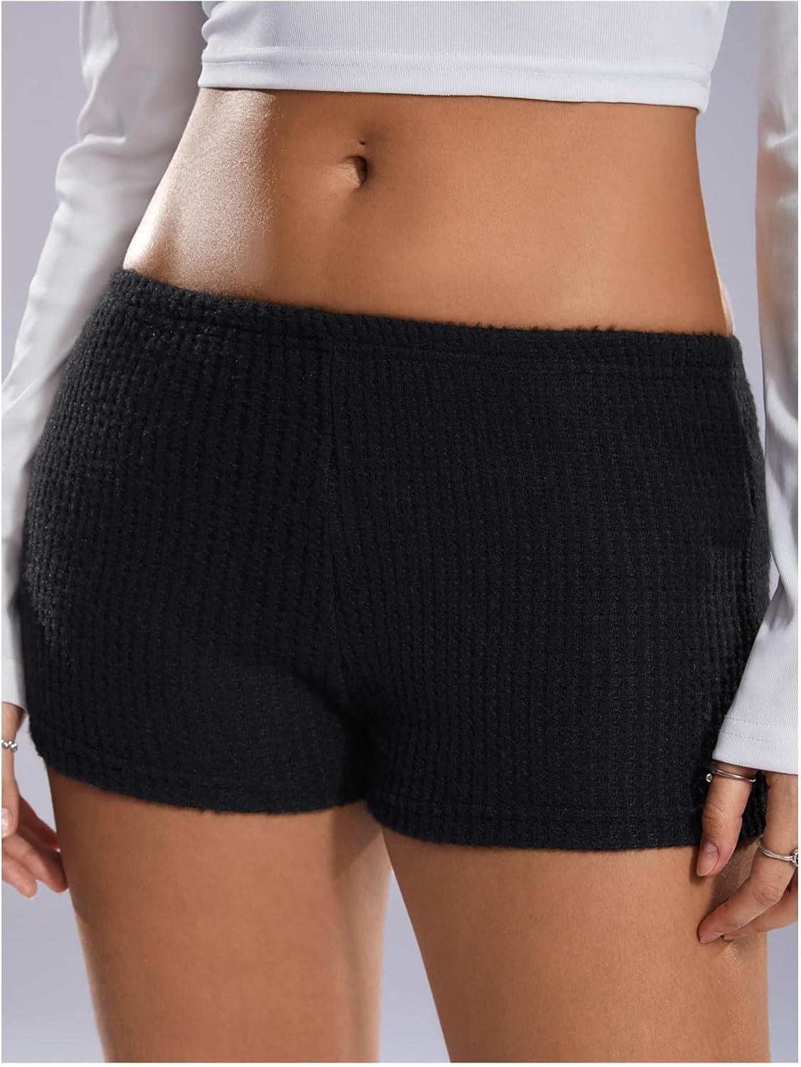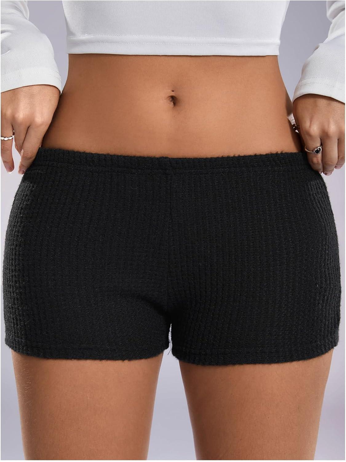SOLY HUX Women’s Striped Micro Shorts Y2k Knit Low Rise Booty Mini Shorts Color Block Stretchy Loungewear(Plain Black)