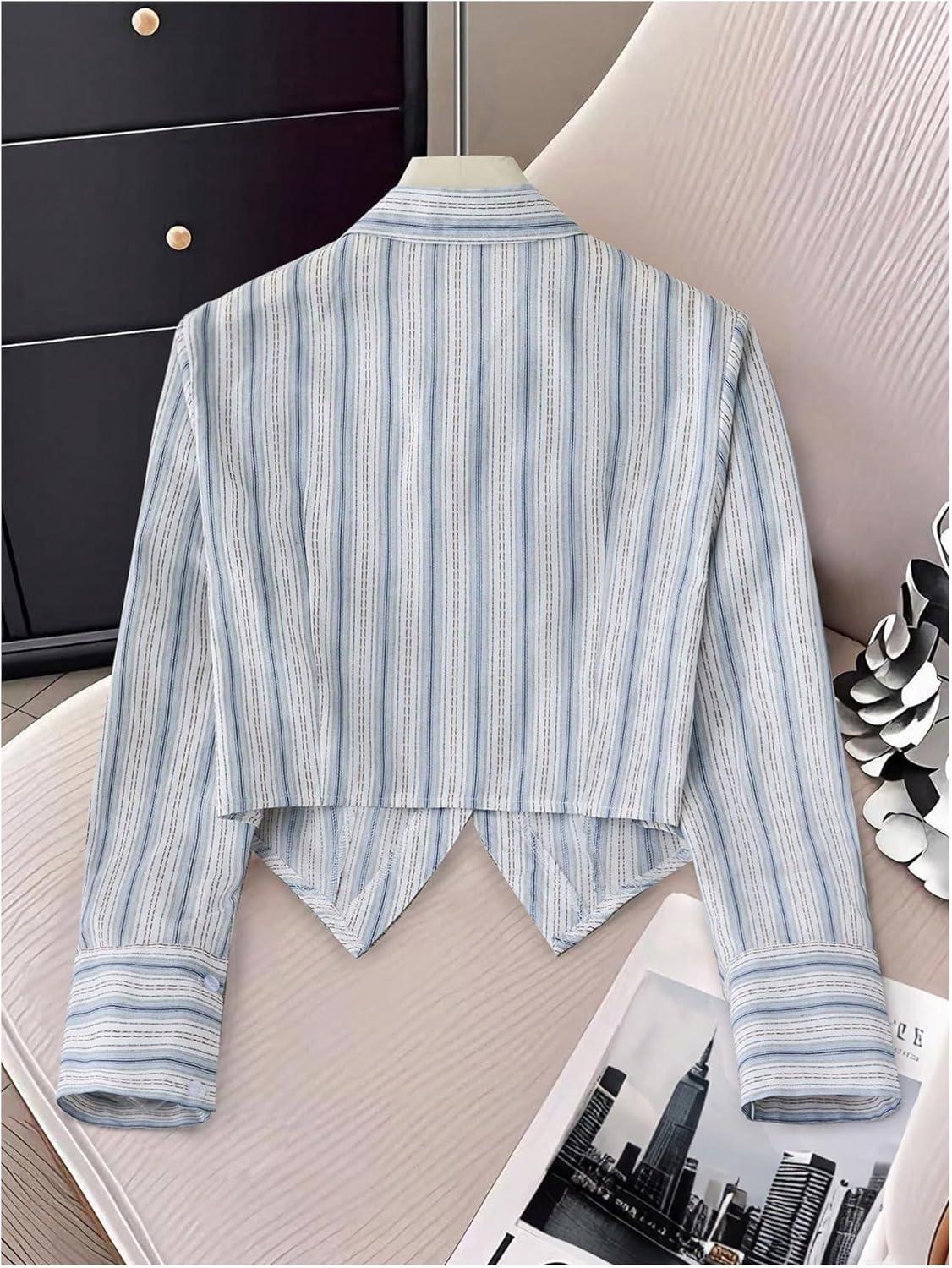 SOLY HUX Women’s Striped Print Button Down College Shirts Long Sleeve Tie Blouse Tops Preppy Clothes(Light Blue Striped)