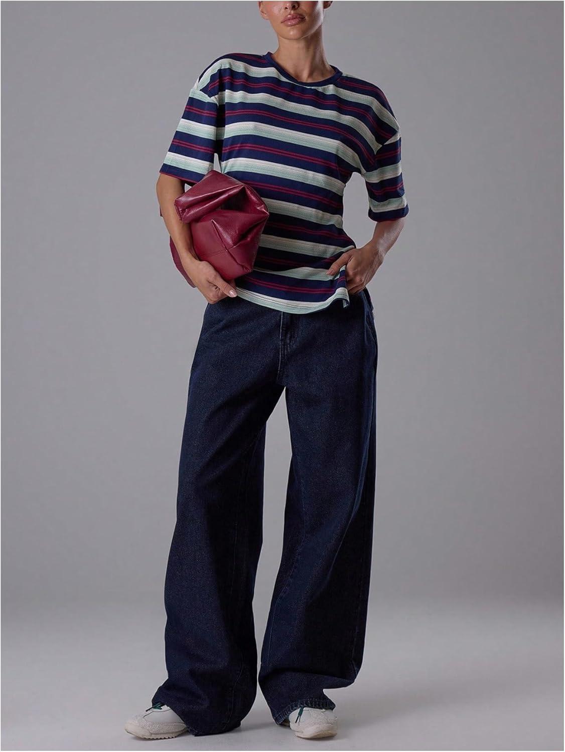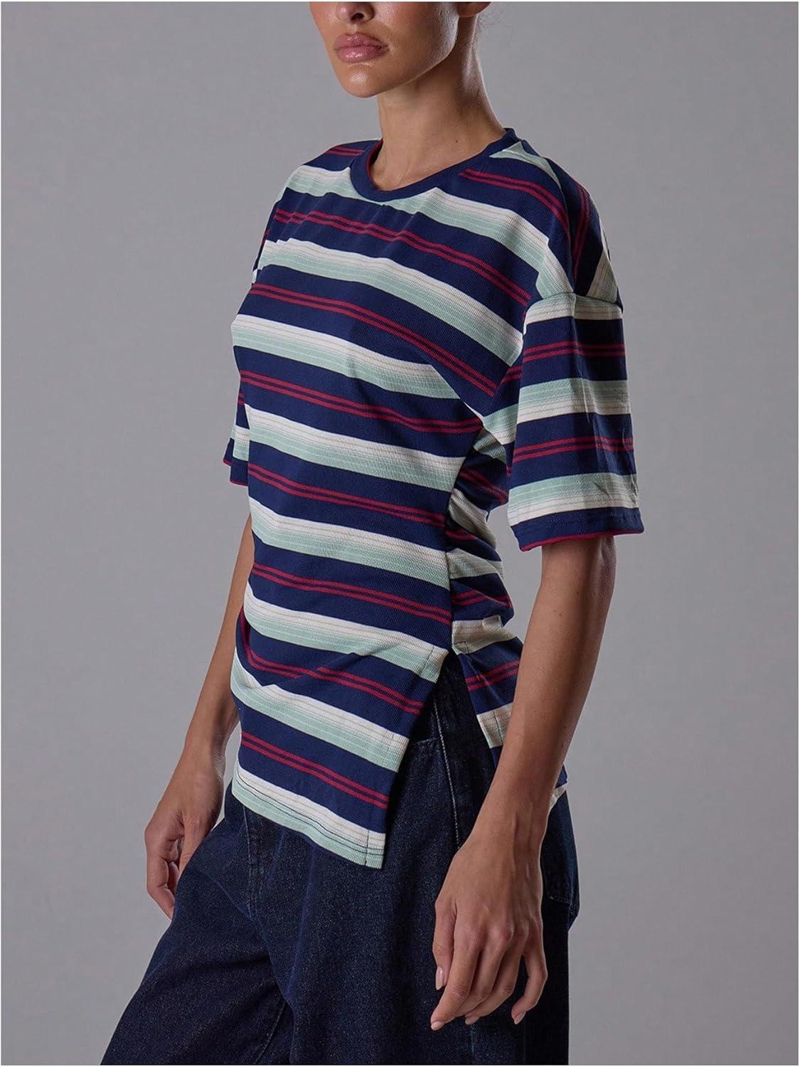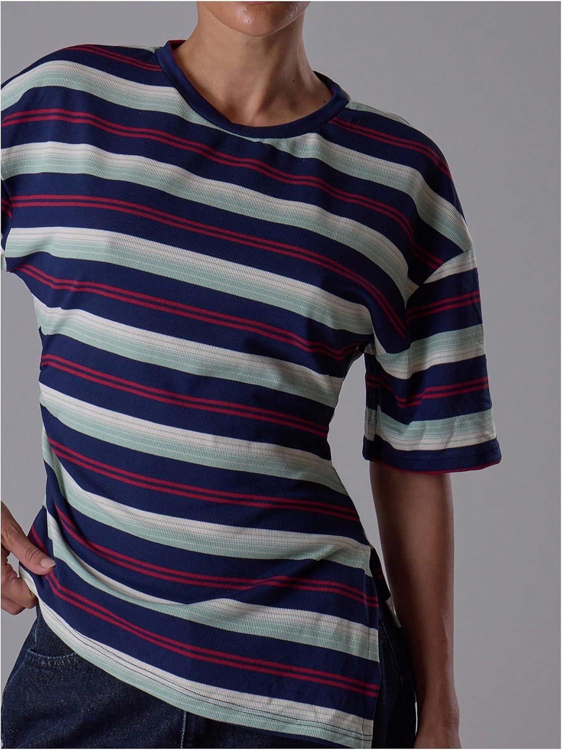 SOLY HUX Women’s Striped T Shirt Short Sleeve Split Asymmetrical Hem Tee Casual Summer Tops(Multicolor Striped)