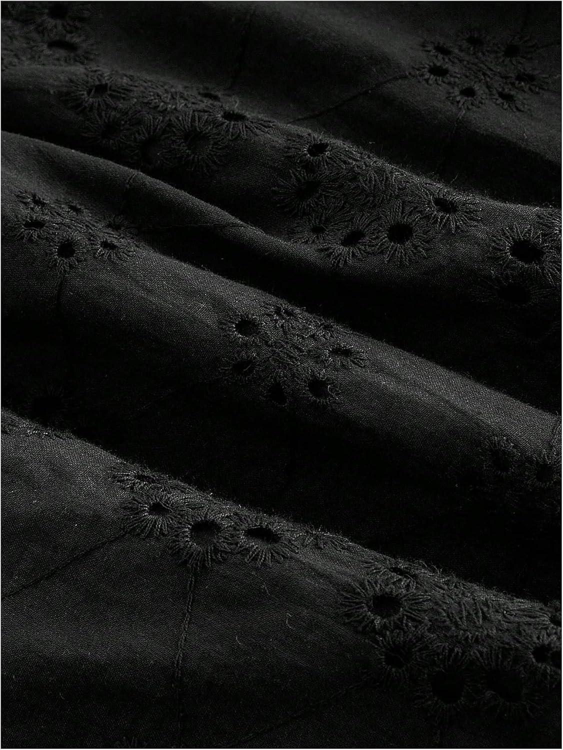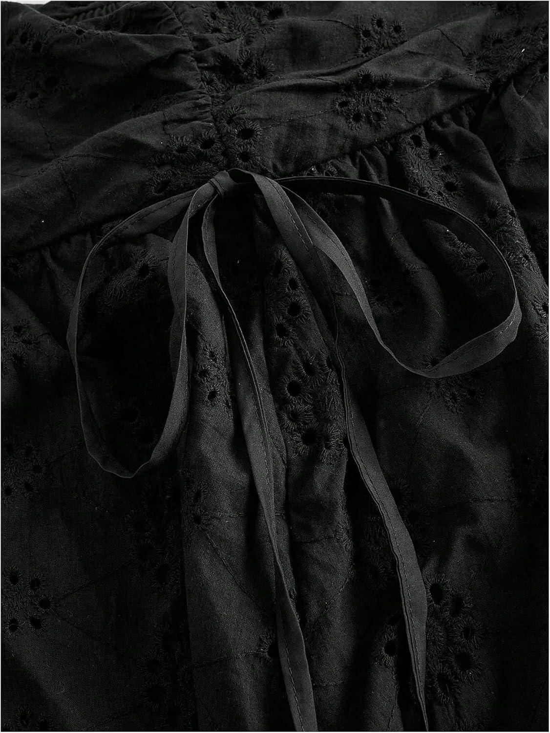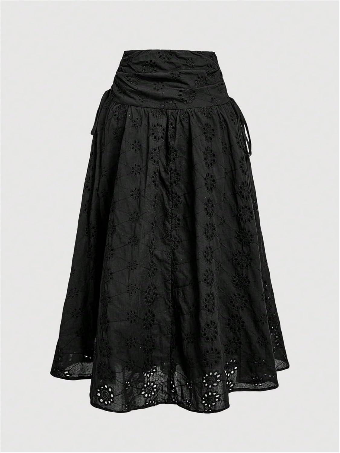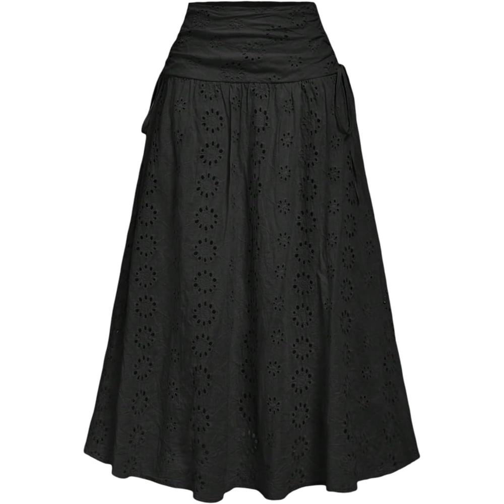 SOLY HUX Women’s Summer Boho Skirt Eyelet Embroidery Bow Tie High Waisted A Line Flowy Vacation Long Skirts(Plain Black)