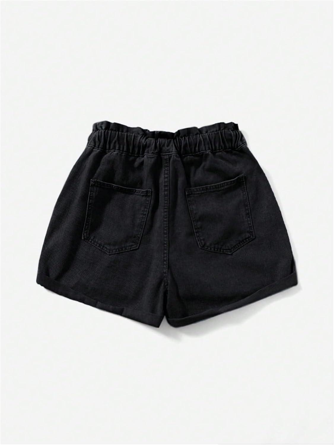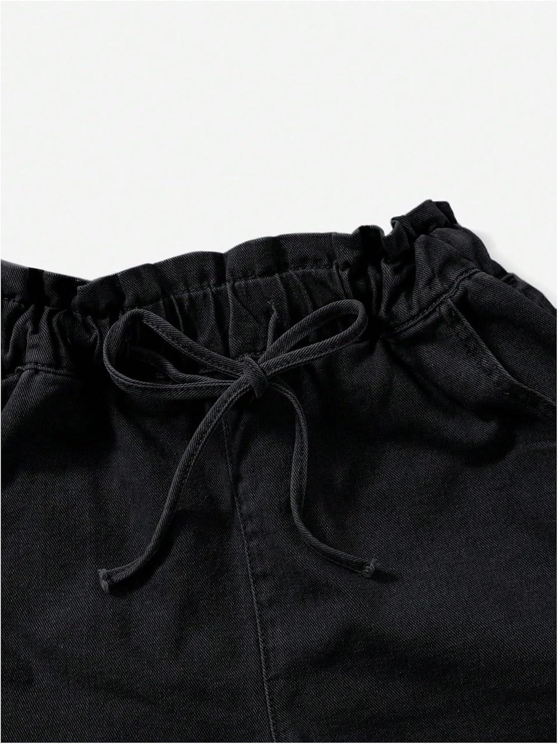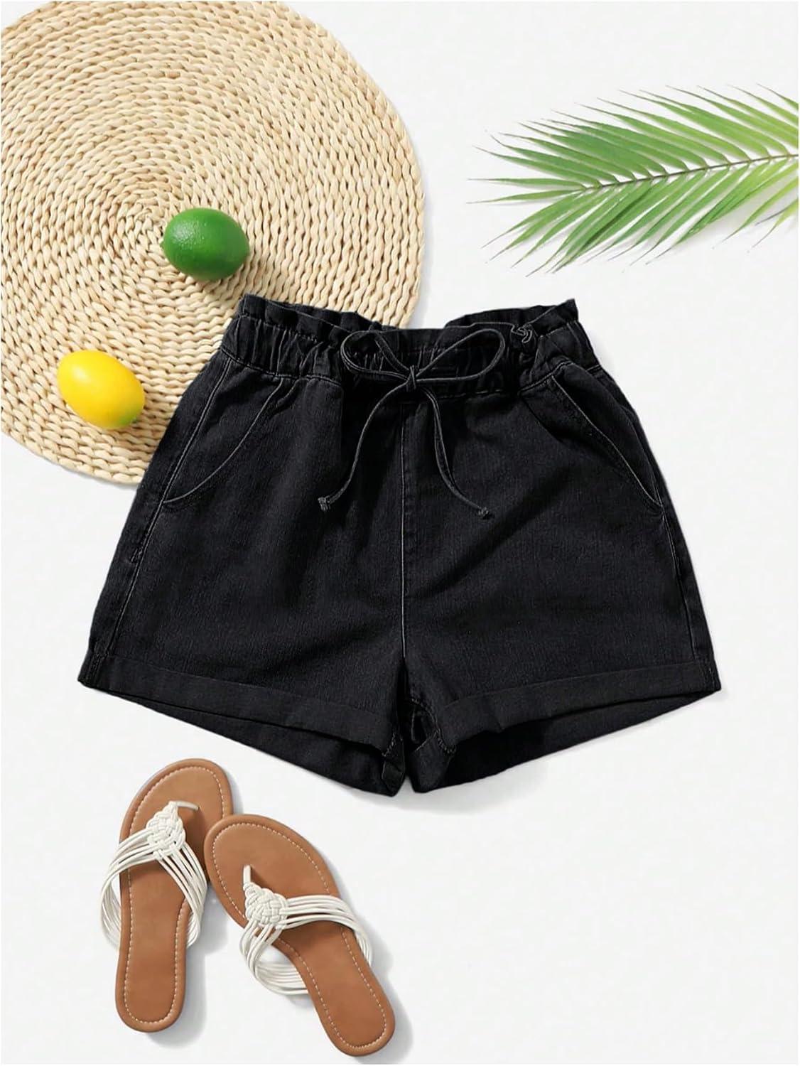 SOLY HUX Women’s Summer Denim Shorts Drawstring Elastic Waist Straight Leg Jeans with Pockets(Plain Black)