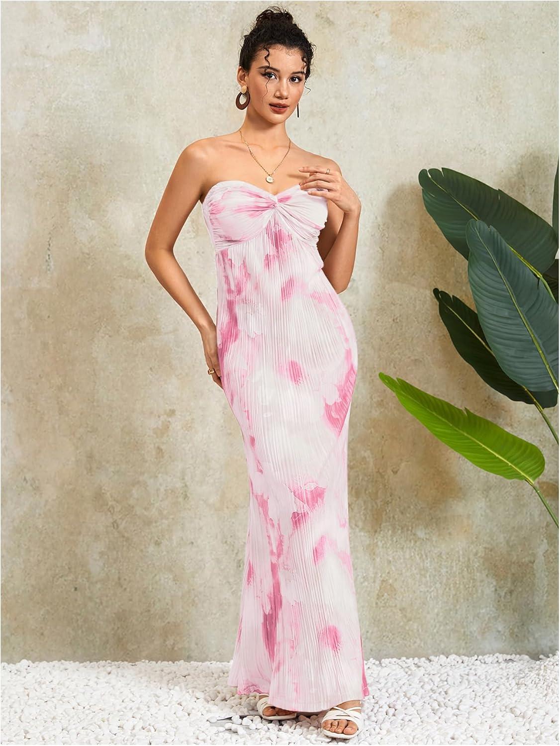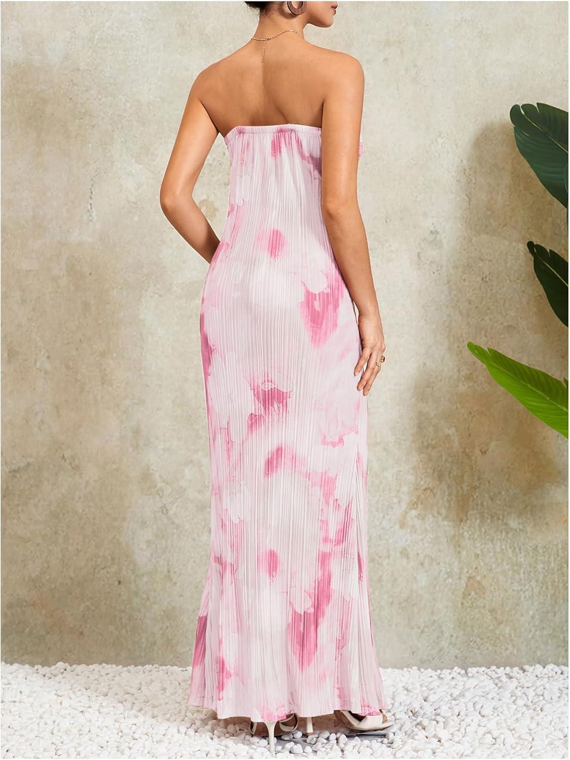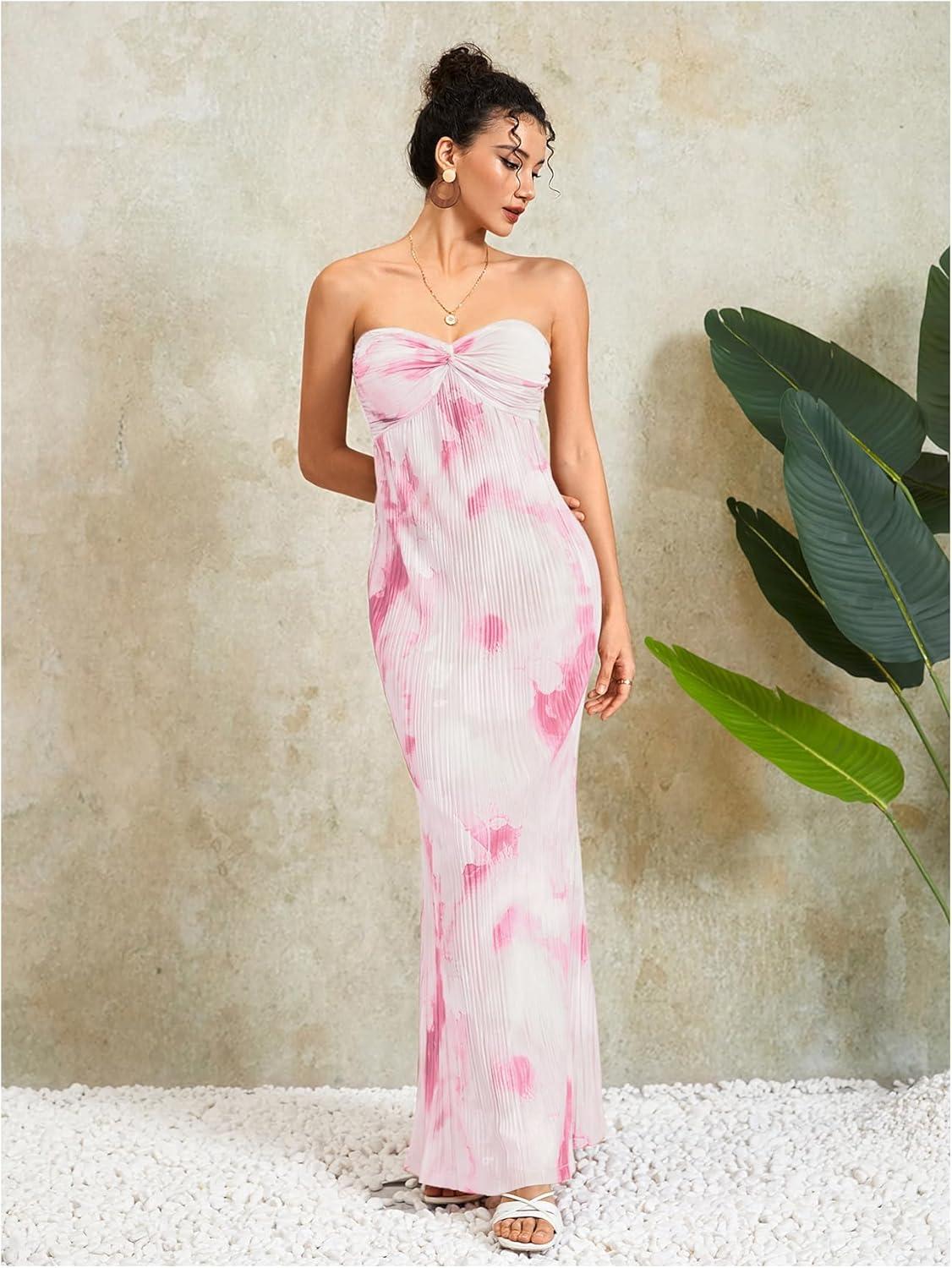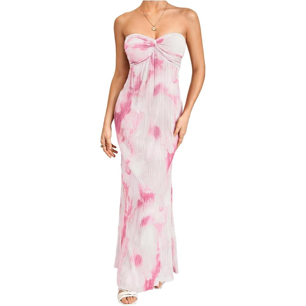 SOLY HUX Women’s Summer Floral Tube Dress Twist Front Strapless Vacation Beach Dresses Maxi Dress(Light Pink)