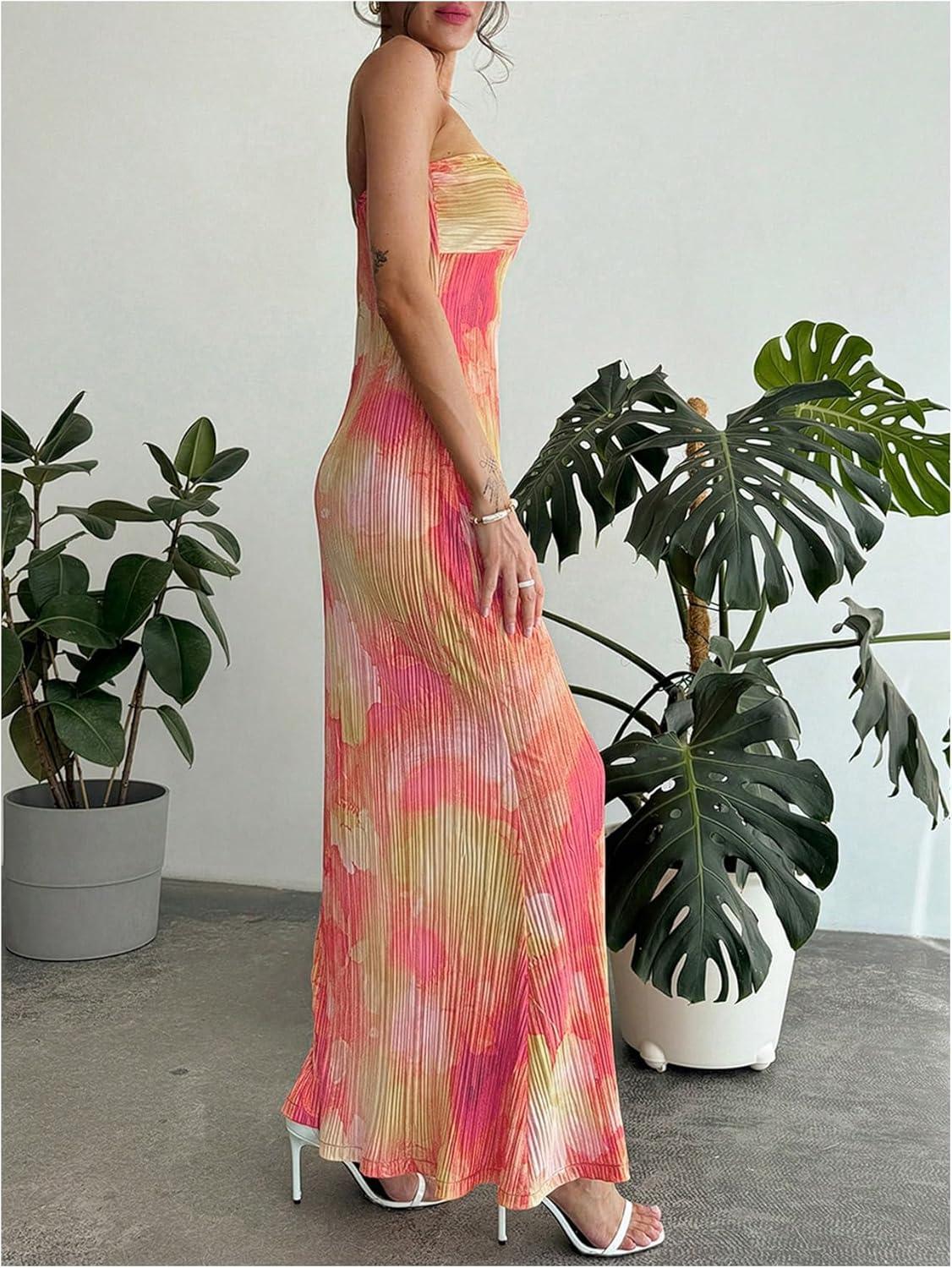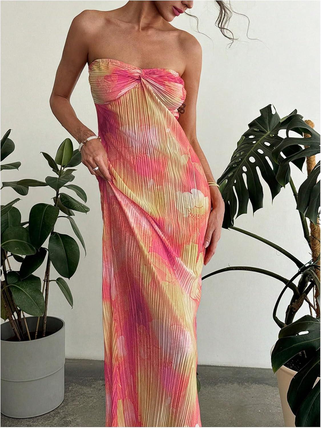 SOLY HUX Women’s Summer Floral Tube Dress Twist Front Strapless Vacation Beach Dresses Maxi Dress(Hot Pink)