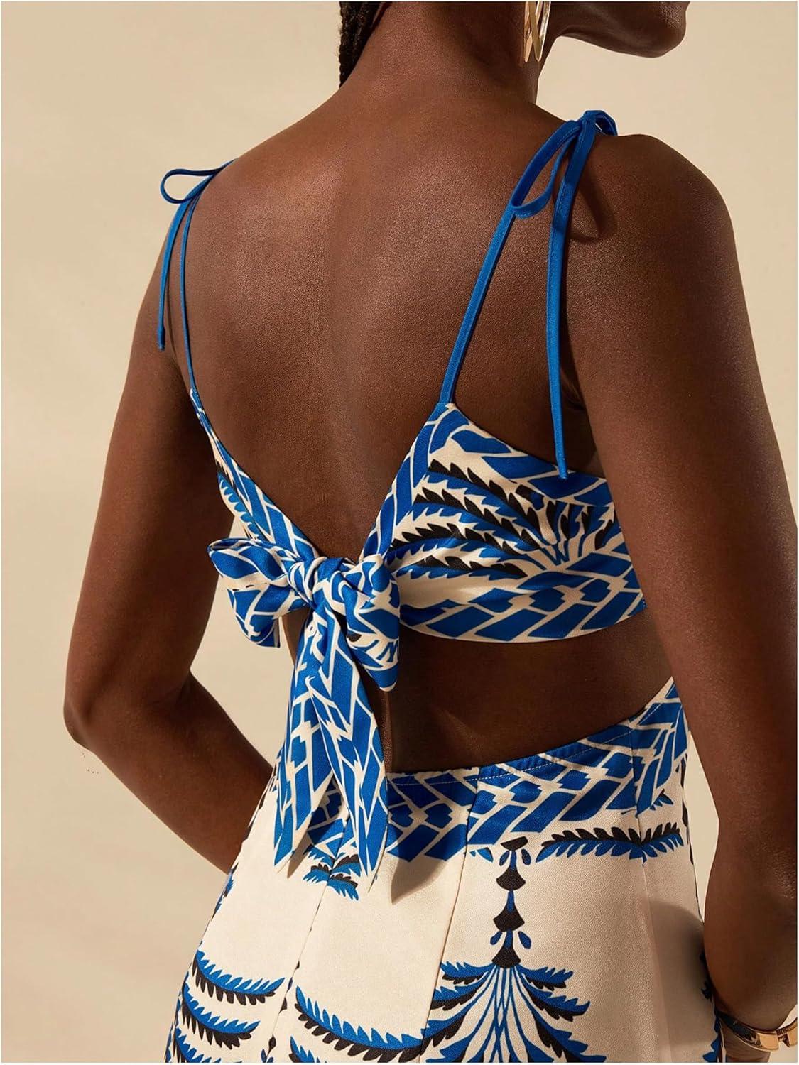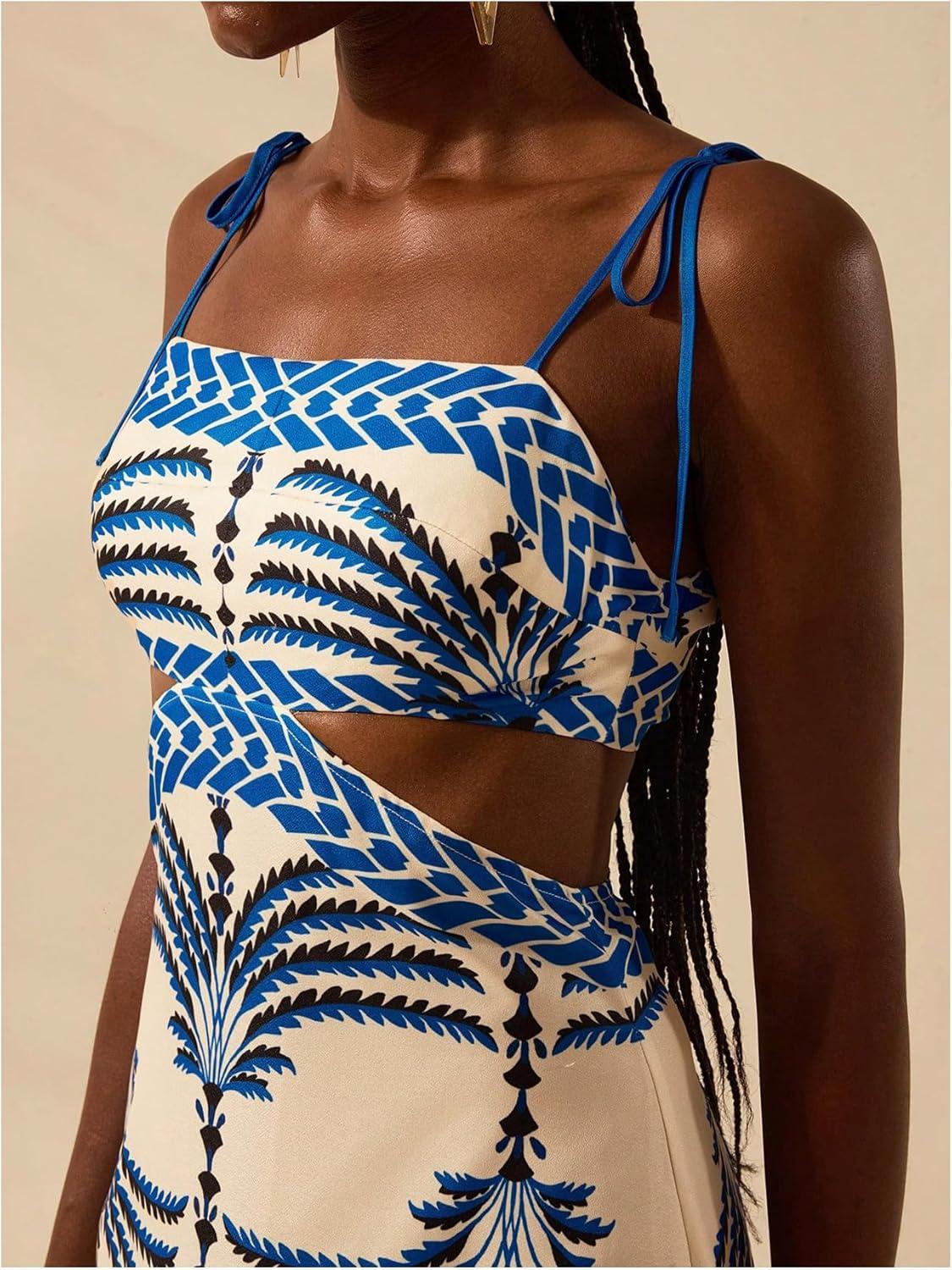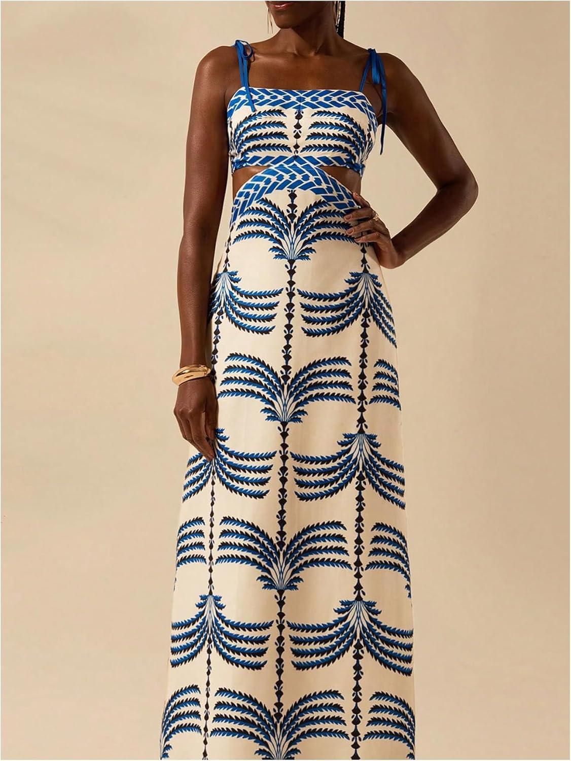 SOLY HUX Women’s Summer Maxi Dress Boho Print Tie Shoulder Spaghetti Strap Cut Out Tie Back Cami Dresses Sundress(Multicoloured Printed)